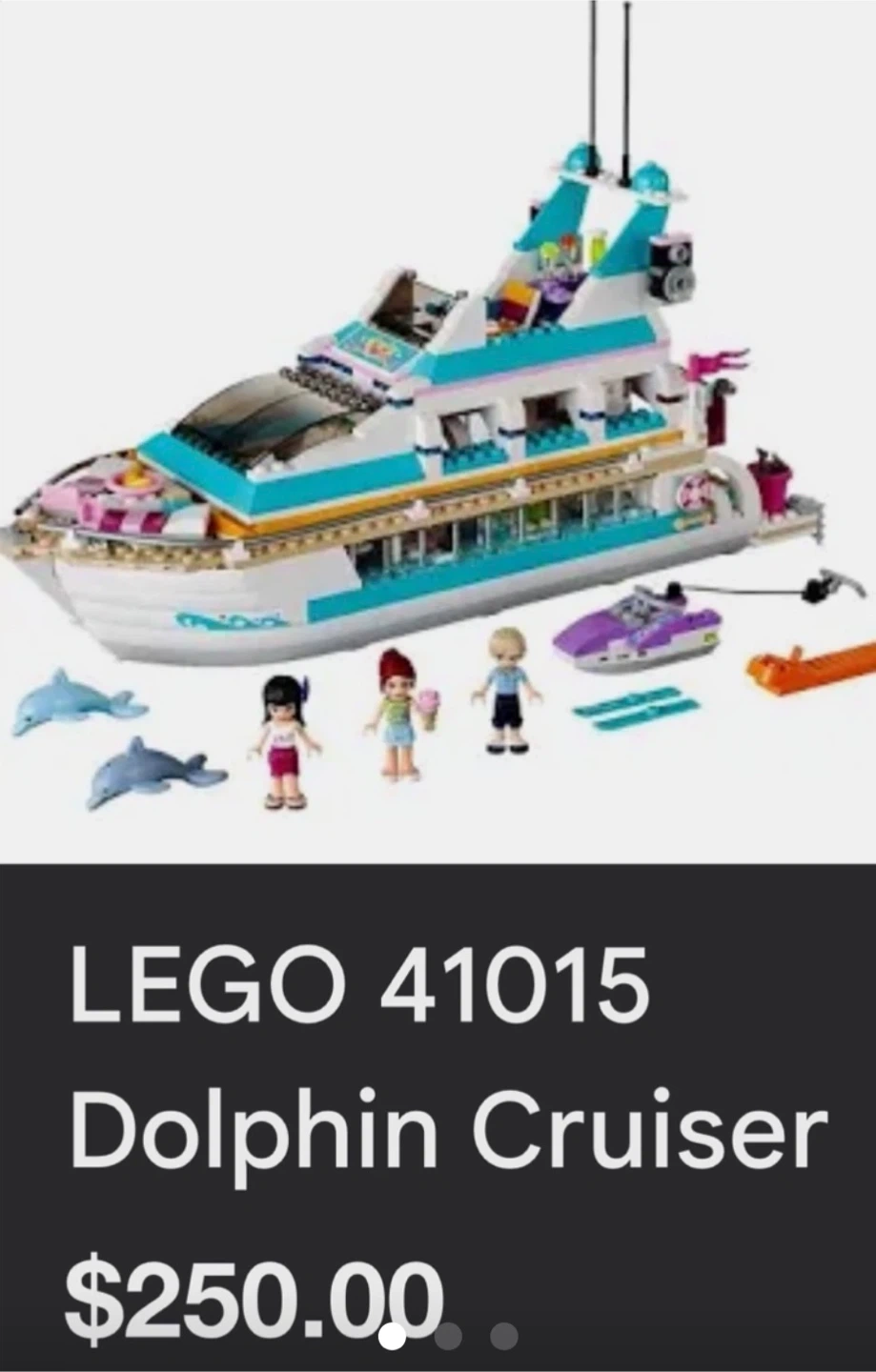 This LEGO Friends set features the Dolphin Cruiser, complete with mini-dolls and accessories. Includes figures and the boat with a slide. It's a fun building toy for creative play. Pieces are made of plastic.