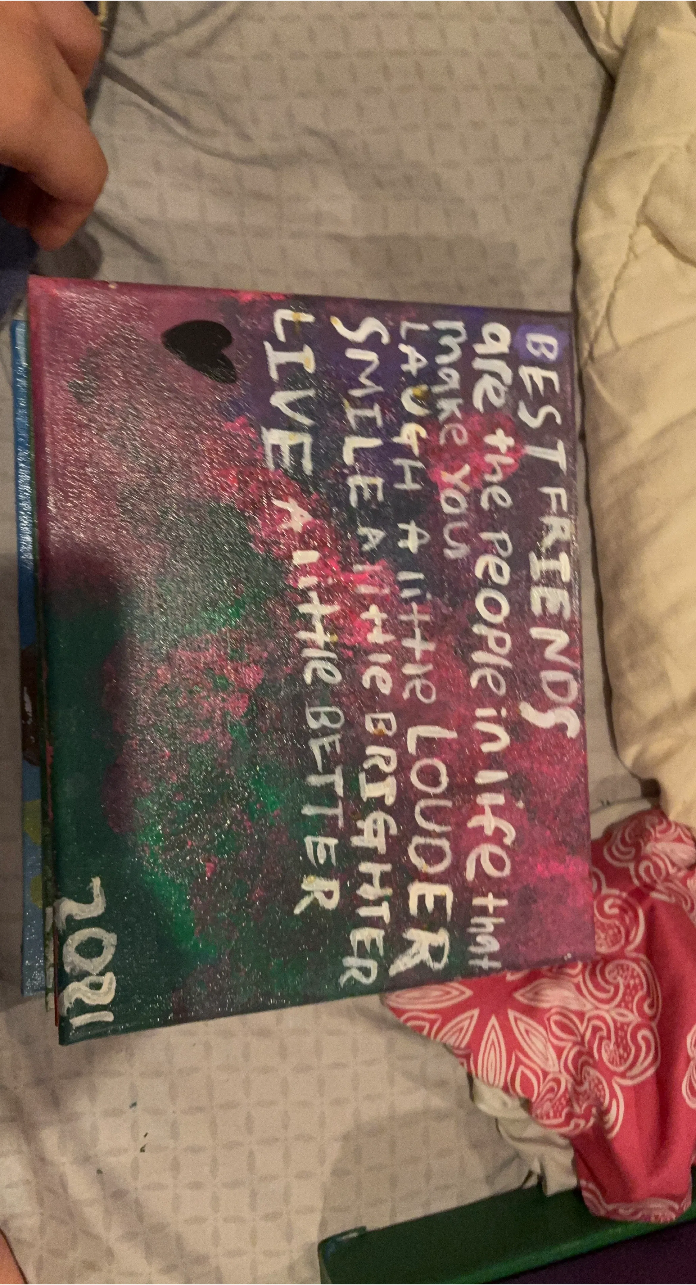 Handmade canvas art with a heartfelt message about friendship: "Best Friends are the people in life that make you laugh a little louder, smile a little brighter, live a little better". The year '2021' is also painted on the canvas