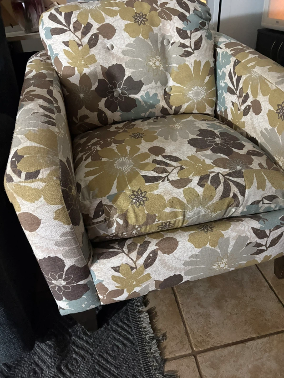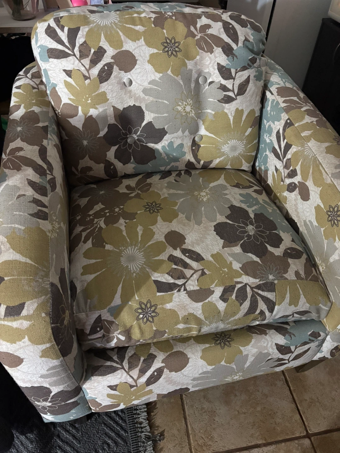 Buy & SellFloral Accent ChairFloral Accent Chair$70Comfy accent chair with a lovely floral pattern. It's upholstered in a durable fabric. This chair is perfect for adding a touch of style to any room!ConditionGoodWHERE TO MEETTim HortonsView MapSELLERverifiedMarnyCentral Frederick600 reviews0 chats·1 favorites·5 viewsSEND CHAT TO SELLERHi Marny! I’m interested in your listing.Hi Marny! I’m interested in your listing.Get the Karrot app to chatSign In to chat