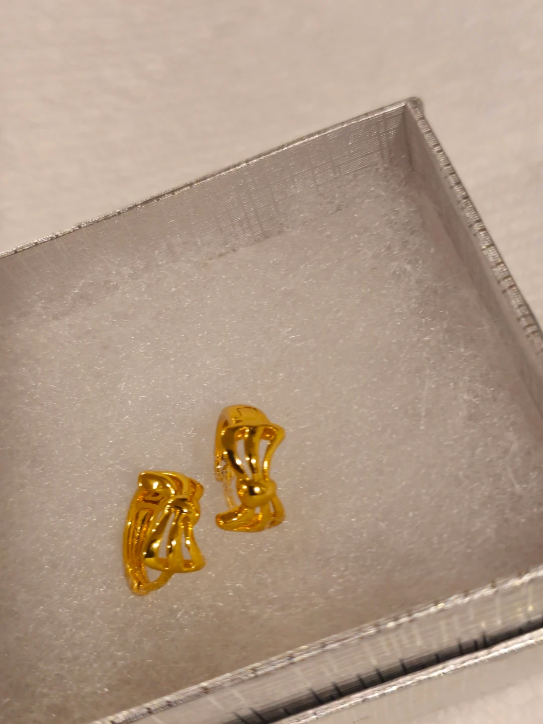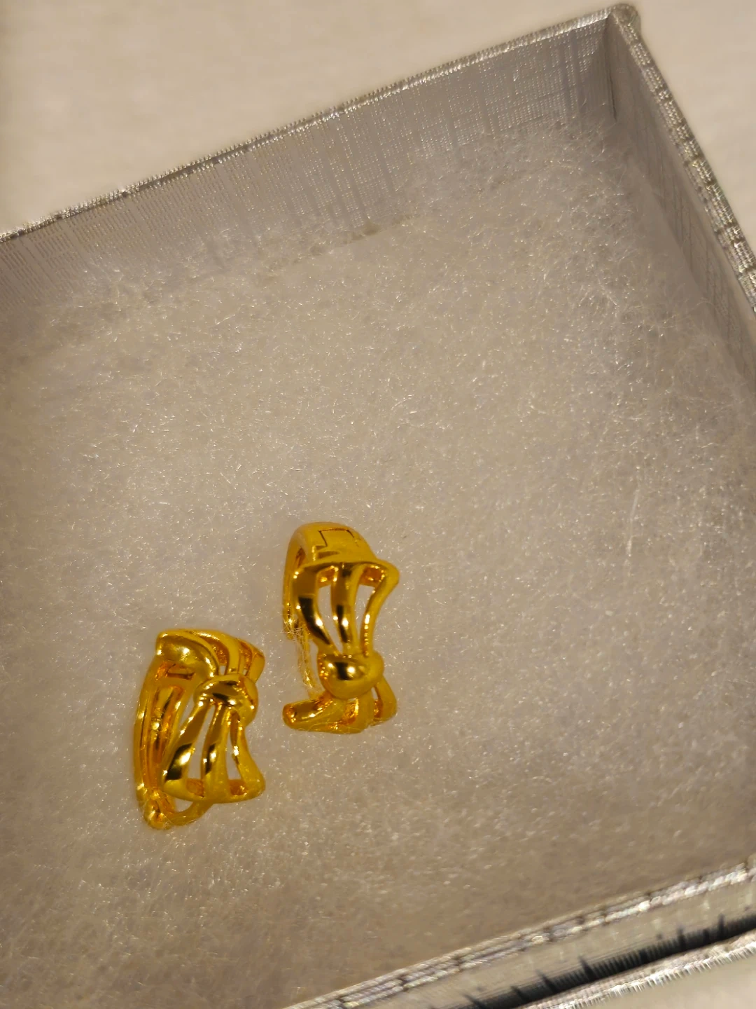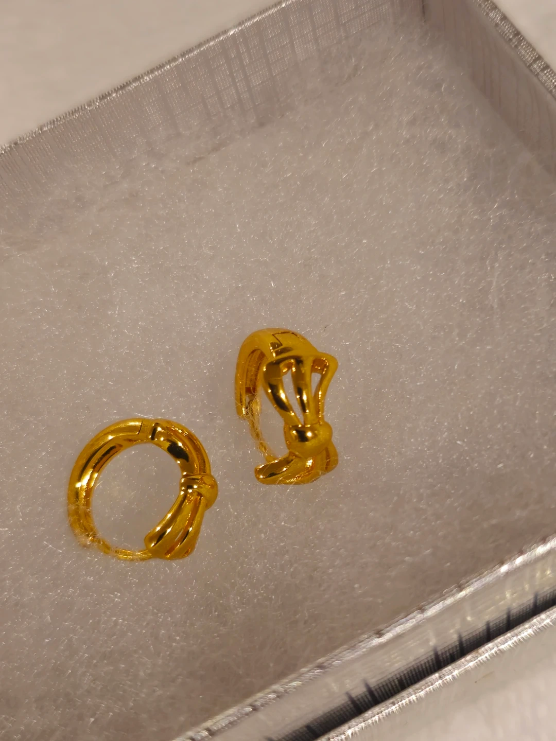 These are classic gold plated hughie earrings with a decorative bow design. They're lightweight and perfect for everyday wear.