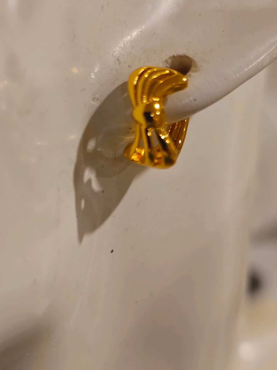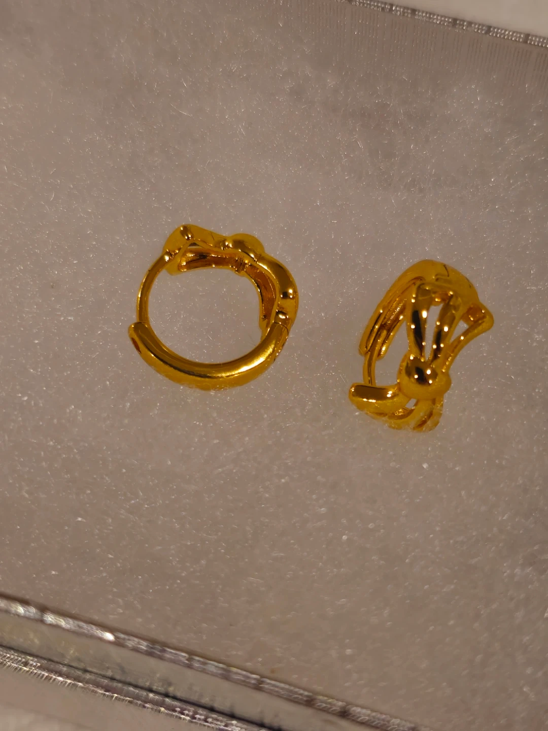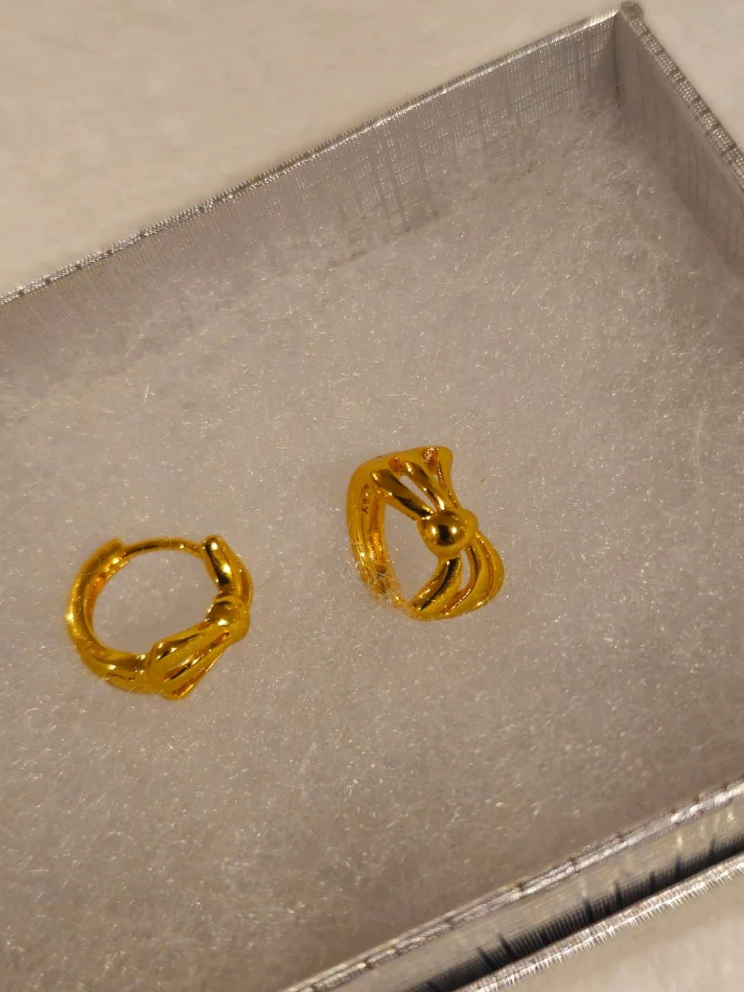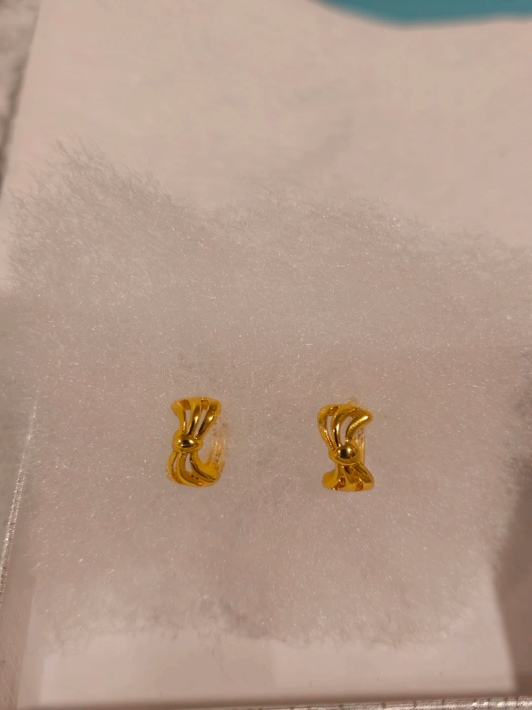These are classic gold plated hughie earrings with a decorative bow design. They're lightweight and perfect for everyday wear.