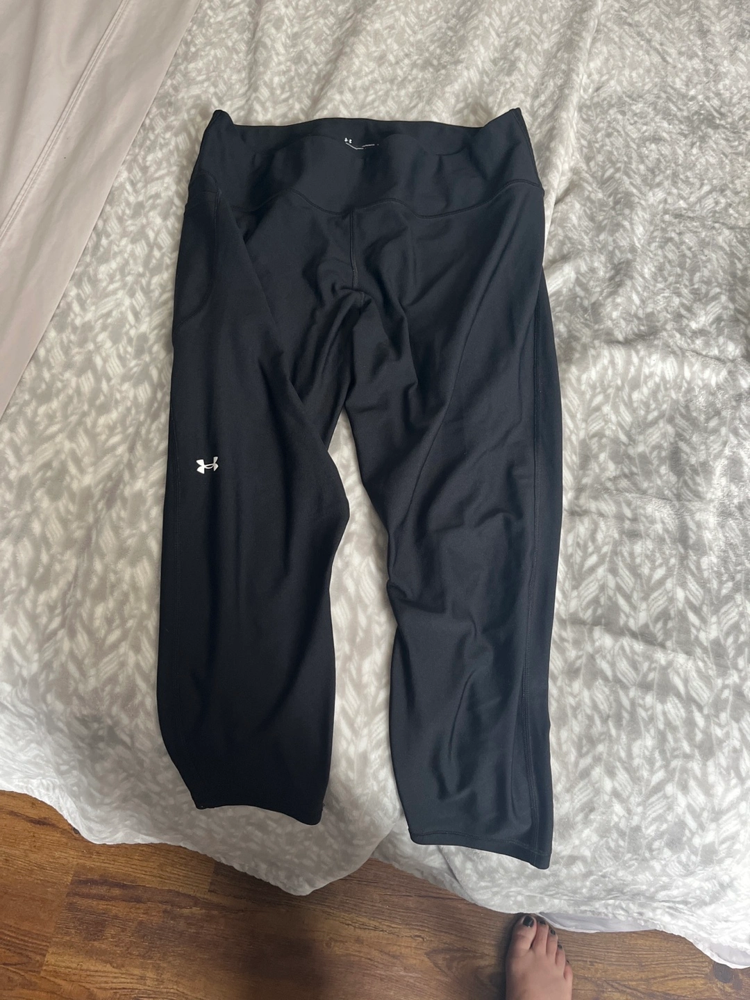 Women's Under Armour black capris. Great for working out or casual wear. High-waisted, comfortable fit.
