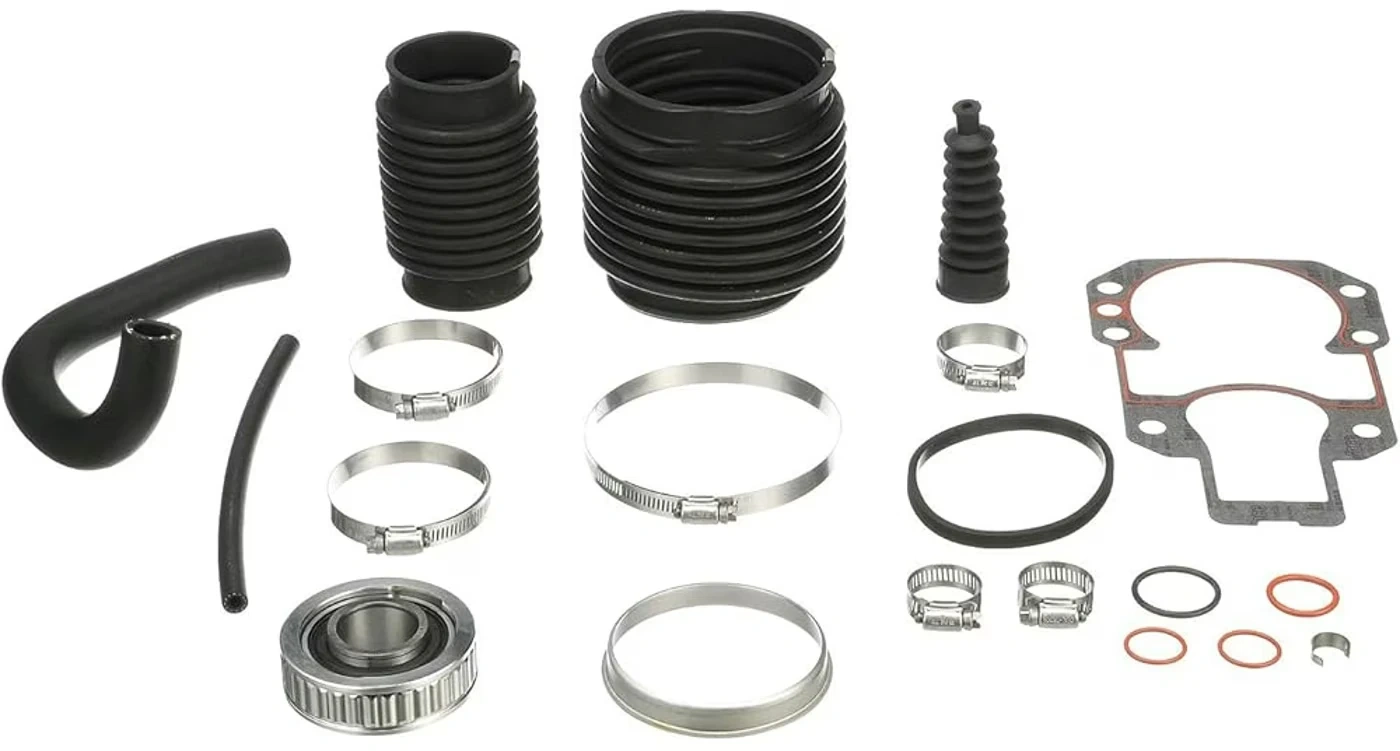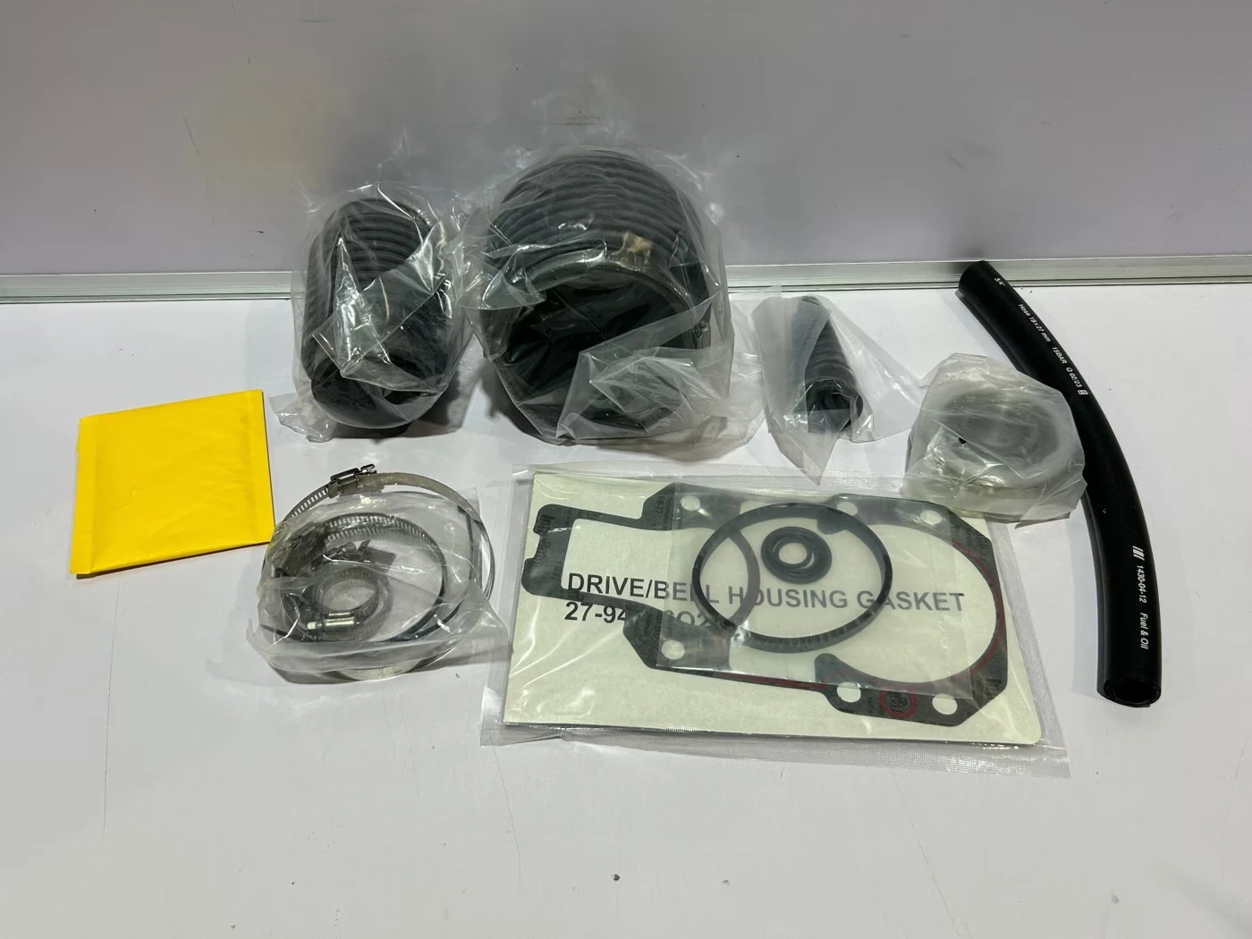 This is a drive/bell housing gasket kit for Mercury Marine outboards and MerCruiser stern drives. It includes bellows, gaskets, clamps, and a hose. Manufactured to meet Mercury Marine original equipment specifications.