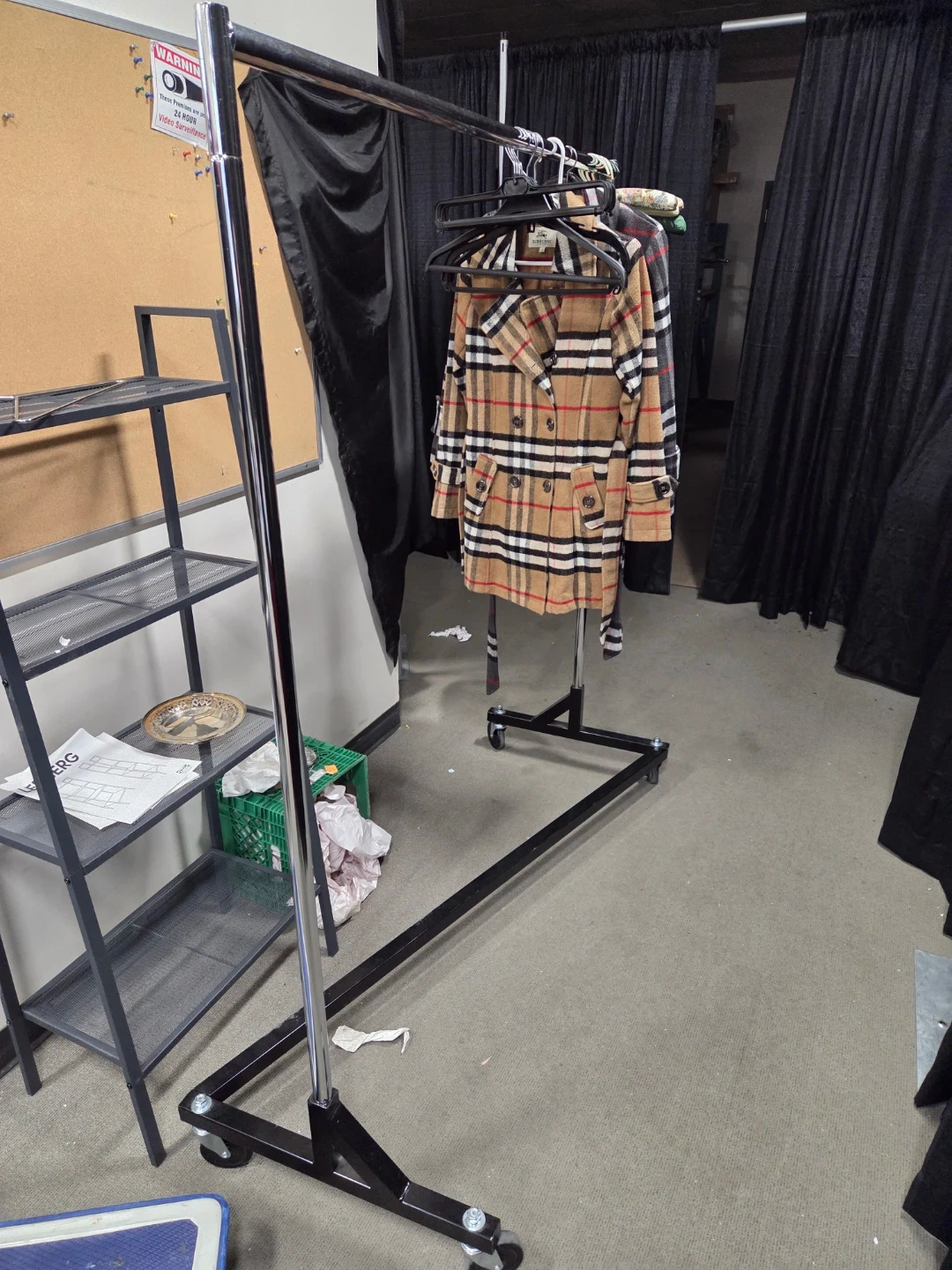 Good rolling rack for home or retail store storefront. Wheels work well, looks in excellent near new condition.