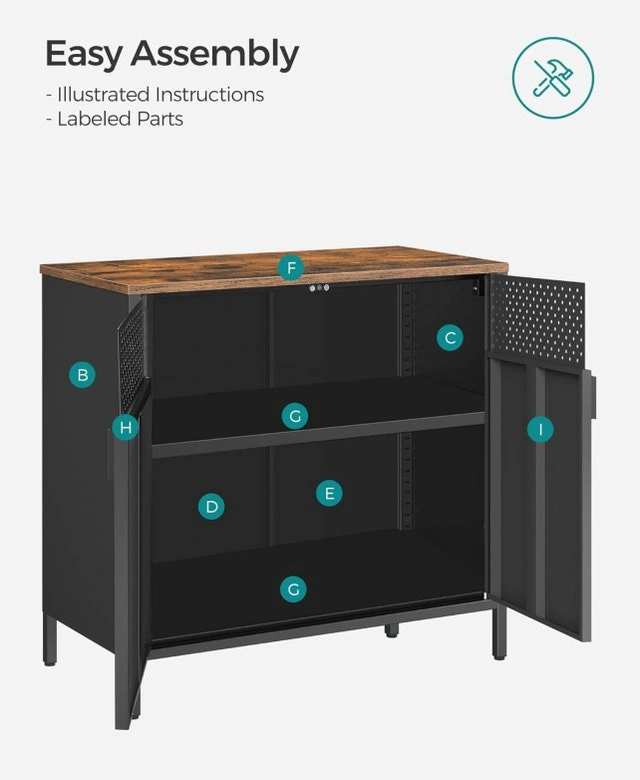 This brand new metal storage cabinet offers a sleek and durable storage solution, featuring two doors and an adjustable shelf. Constructed with thick steel panels and a rust-resistant coating, this cabinet is designed for longevity and easy maintenance. The cabinet's dimensions are approximately 31.5" wide, 15.7" deep, and 29.9" high, with a table top that can support up to 110 lbs and a shelf capable of holding up to 44 lbs. It’s perfect for organizing your space with a touch of industrial style. Thick steel panel construction, rust-resistant coating, adjustable shelf, two-door design, easy to clean. If you're seeing this ad, the cabinet is still available and ready to find its new home.