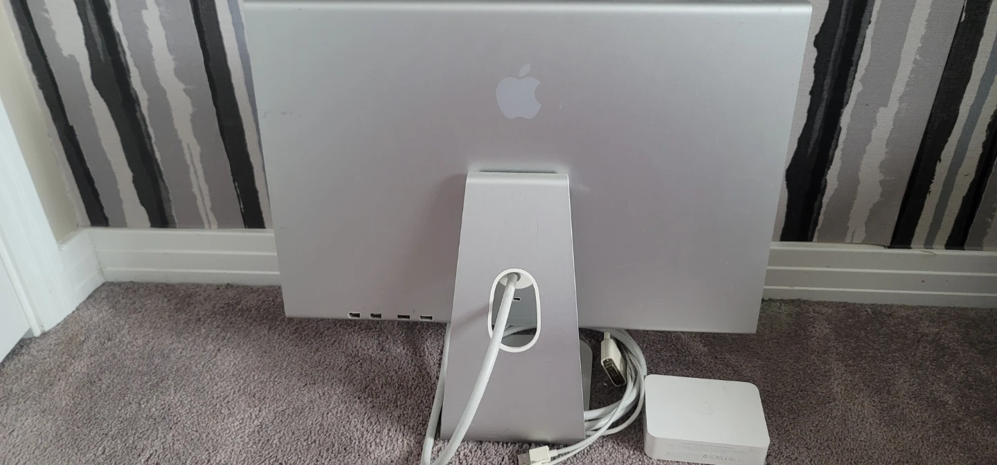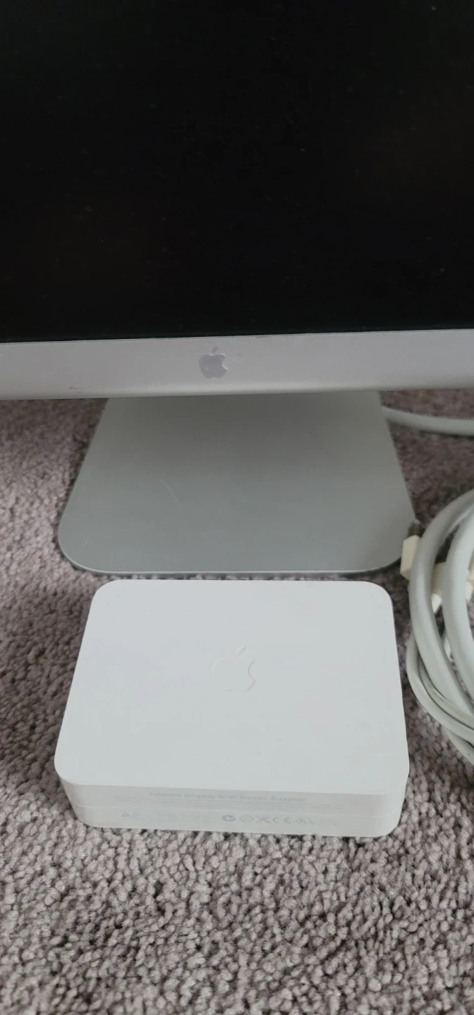 This is a 20-inch Apple Cinema HD Display monitor. It's a flat-panel LCD display with a resolution of 1680x1050. It comes with its original power adapter and cables. This monitor is great for creative work or general computer use.