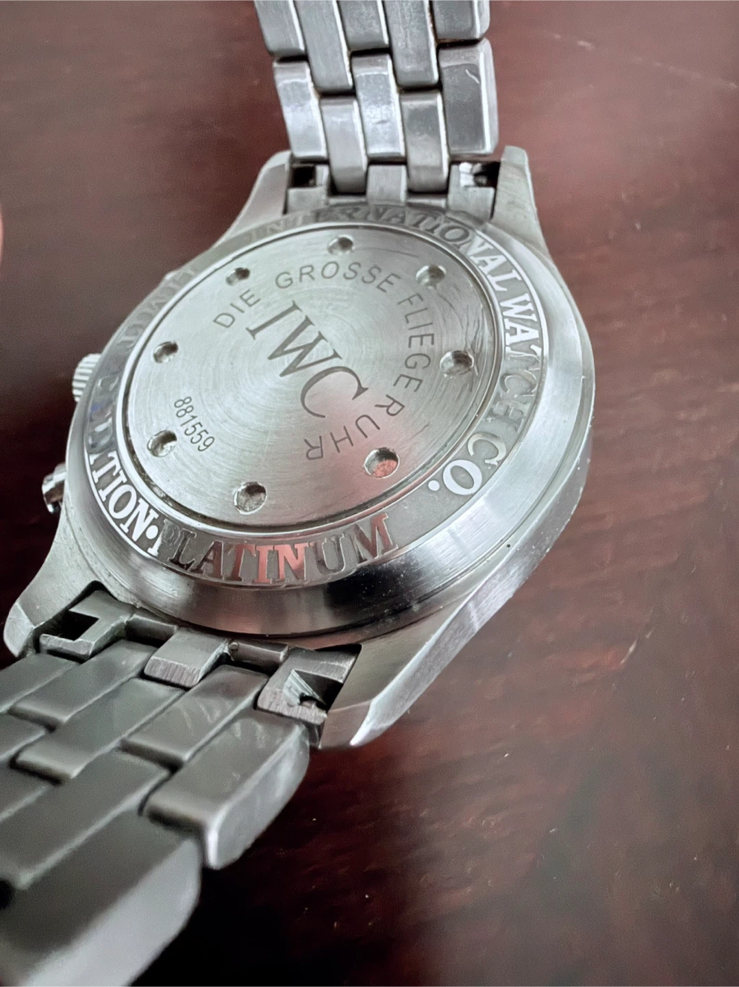 Selling an IWC Schaffhausen Chronograph watch. It has a blue face and a stainless steel band.