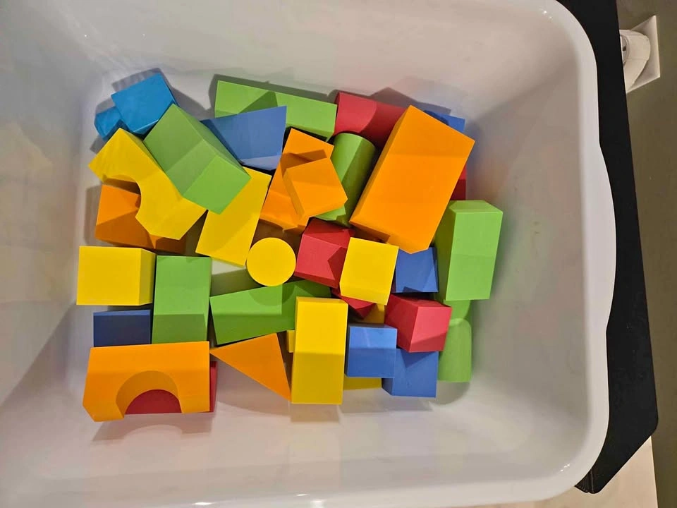 Including 41 pcs of soft bricks in 10+ size and shapes, great value pack for building blocks game. In 5 random bright colors (red, orange, green, yellow, blue). Playing as jigsaw / tangram puzzles, assemble numbers, letters, vehicles, animals, buildings on the floor or desktop. Playing as stacking blocks, stack the blocks up to build a colorful house, castle or other buildings from the imagination. Playing in baby's bath time, Blocks are water-proof and light weight, will float on the water, children will have a happy time in the bath with them. Compatible blocks, can mix with other similar size of blocks. A color painted building instruction manual is included, suitable for preschool learning. Premium EVA Foam Material, high density, soft and light weight, but durable in use, 100% non-toxic and BPA Free. Great early educational toy for kids color & shape recognization, hands-on coordination, and improving their Fine Motor Skills & Other Fundamental Building & Communication Skills. Great party favor item for kids aged 18M+, suitable for pre-kindergarden classroom as well, Ideal gifts for kids in birthday, Christmas, New Years and other holidays.