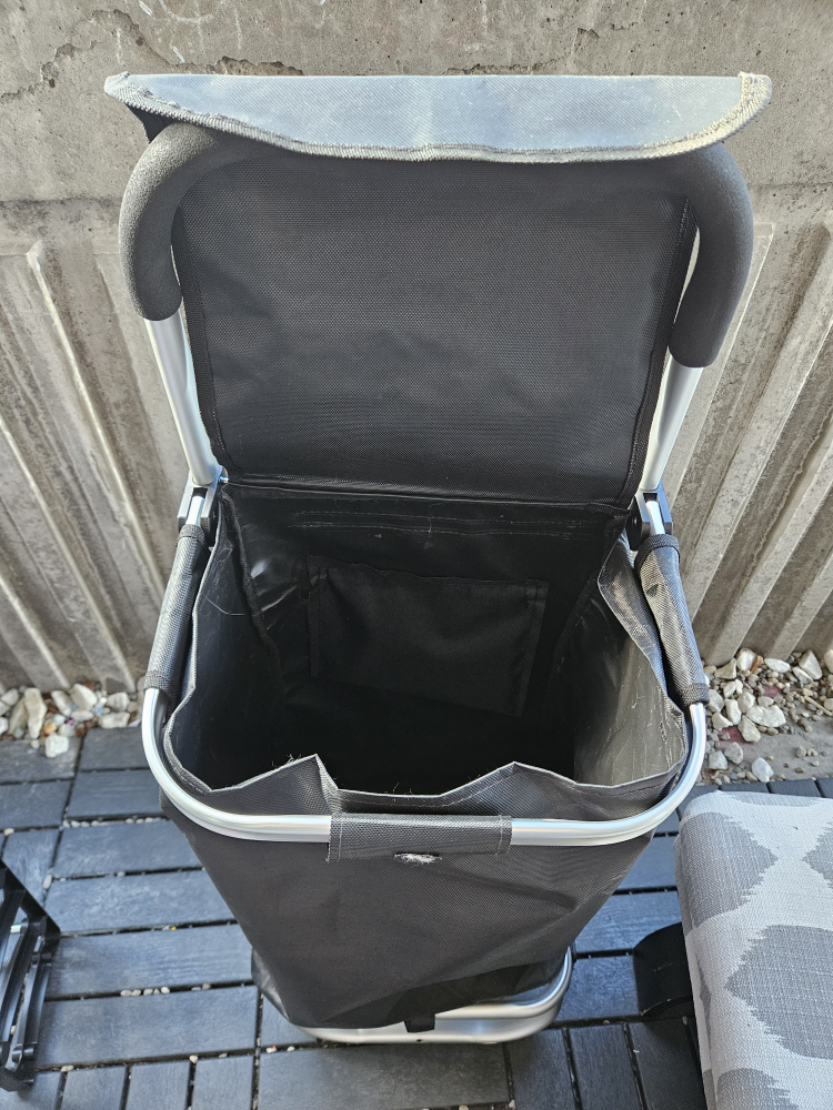 Selling a handy black folding shopping cart! It's perfect for groceries, laundry, or anything else you need to haul around. It's in great shape and ready for a new home