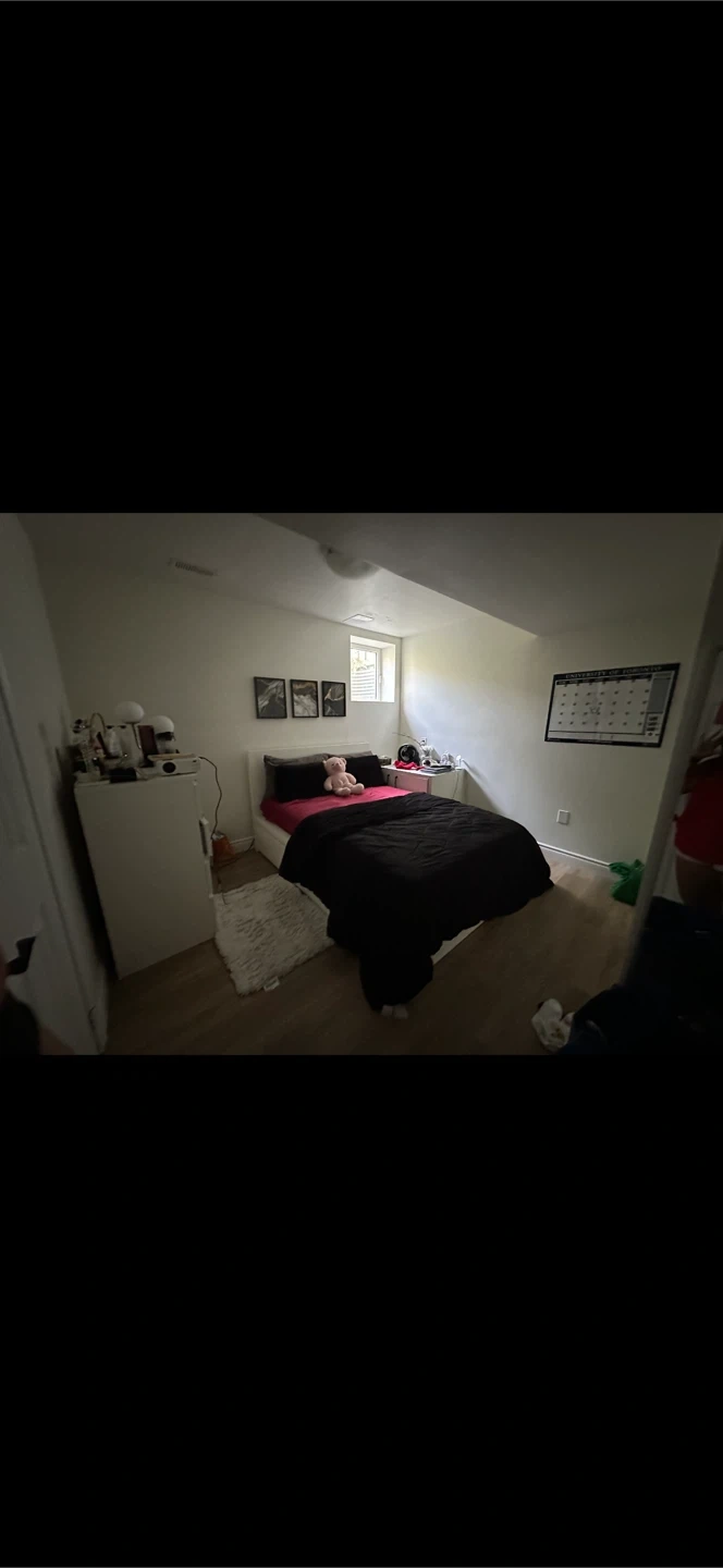 IKEA MALM high bed frame in white. It includes four storage boxes for convenient organization. This bed frame is a full size.