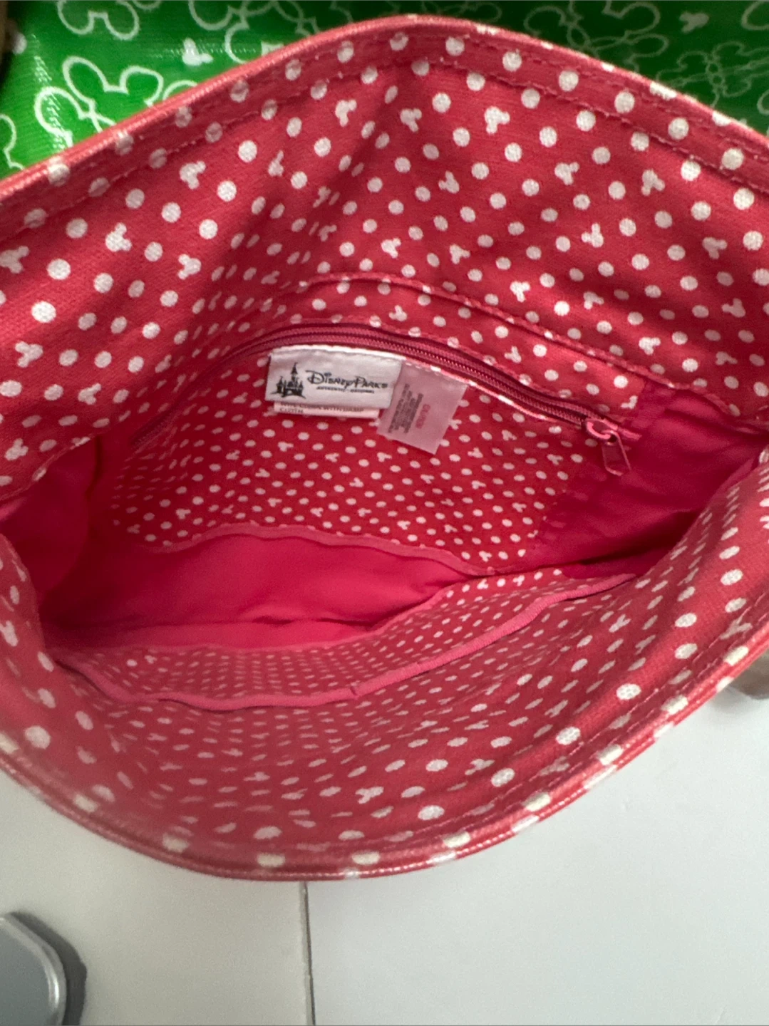Red Polka Dot & Green Mickey Mouse Print Bag