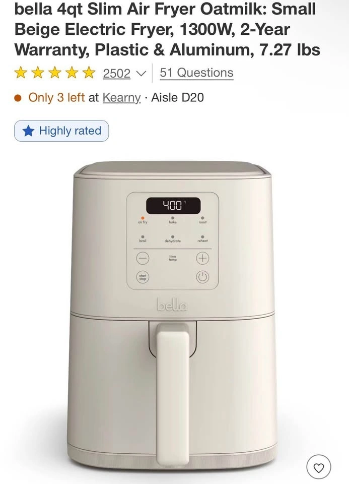 Buy & SellBELLA Air Fryer – Fully FunctionalBELLA Air Fryer – Fully Functional$45BELLA air fryer in good working condition. Clean and well maintained. Pickup: Jersey City. Cash or Zelle. Selling due to move.WHERE TO MEETCheck LocationView MapSELLERverifiedJoanneJournal Square600 reviews0 chats·1 favorites·13 viewsSEND CHAT TO SELLERHi Joanne! I’m interested in your listing.Hi Joanne! I’m interested in your listing.Get the Karrot app to chatSign In to chat