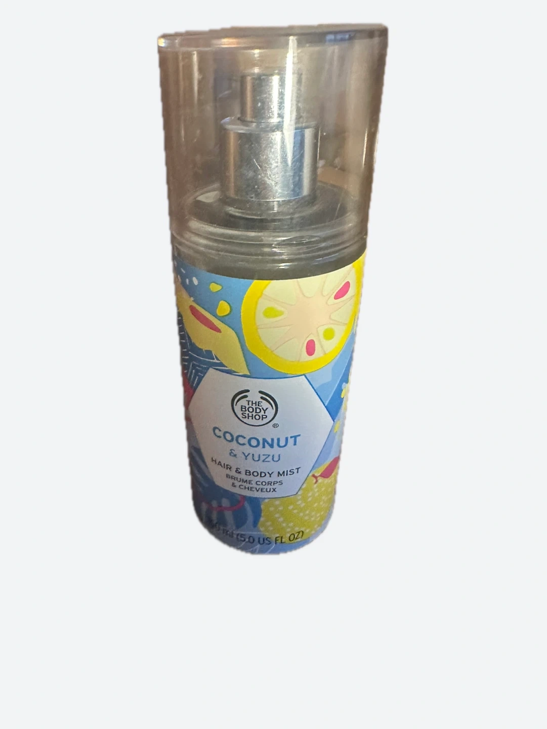 The Body Shop Coconut & Yuzu Hair & Body Mist. It's a hair and body mist that comes in a 5.0 US fluid ounce bottle. This mist is great for a refreshing scent on the go!