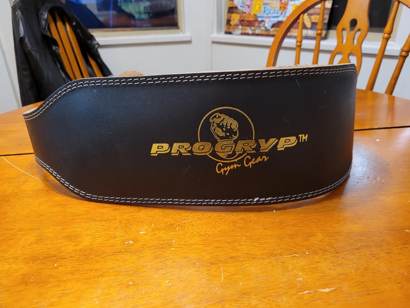 Selling a ProGryp Gym Gear weightlifting belt. It's in great condition and ready to help you with your workouts! The belt is black with gold lettering.