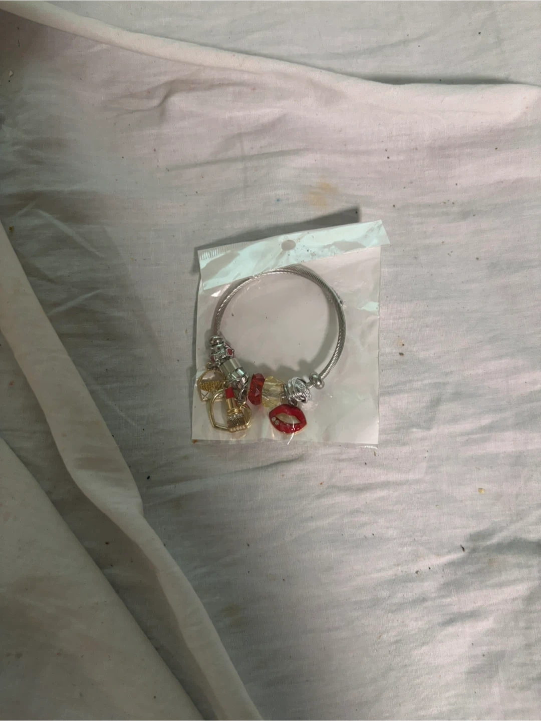 Selling a cute charm bracelet! It's a silver-tone bracelet with a few different charms attached. It comes in its original packaging.