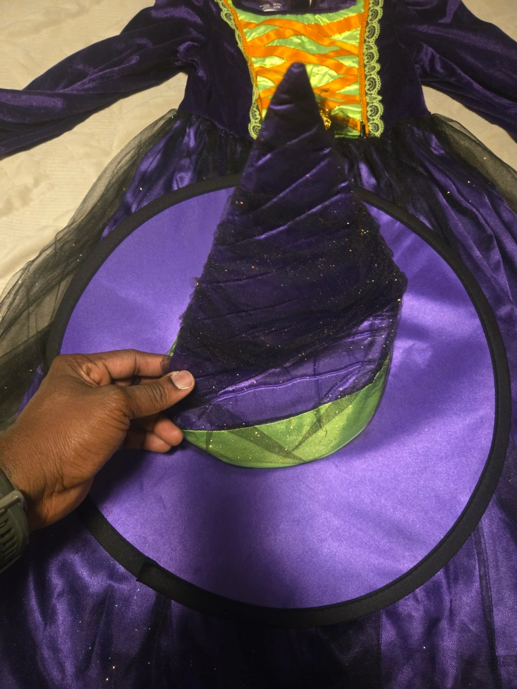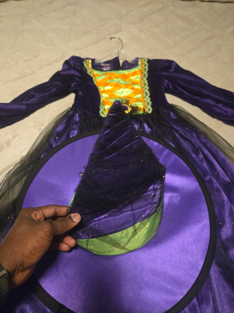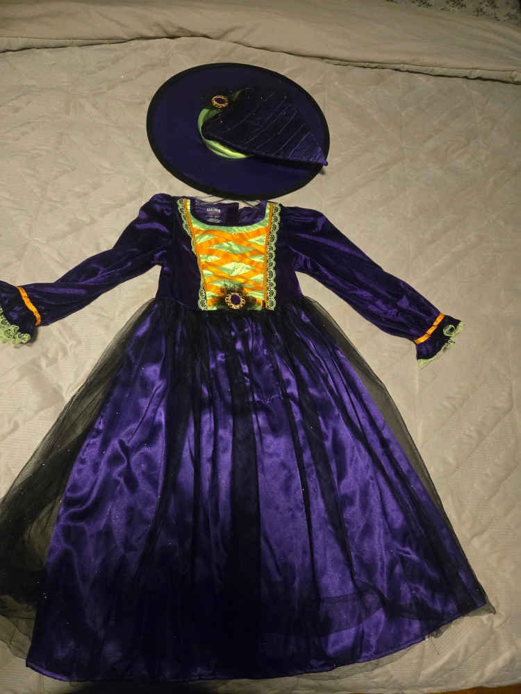 18Foggy Cauldron Costume Co. witch costume in size S (5/6). This adorable costume is perfect for Halloween or dress-up! The tag indicates it fits UK size 5-6 years and EU size 116.