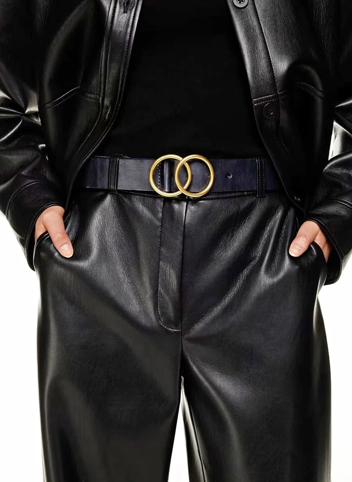 Aritzia Babaton Double Ring Black Leather Belt - Medium