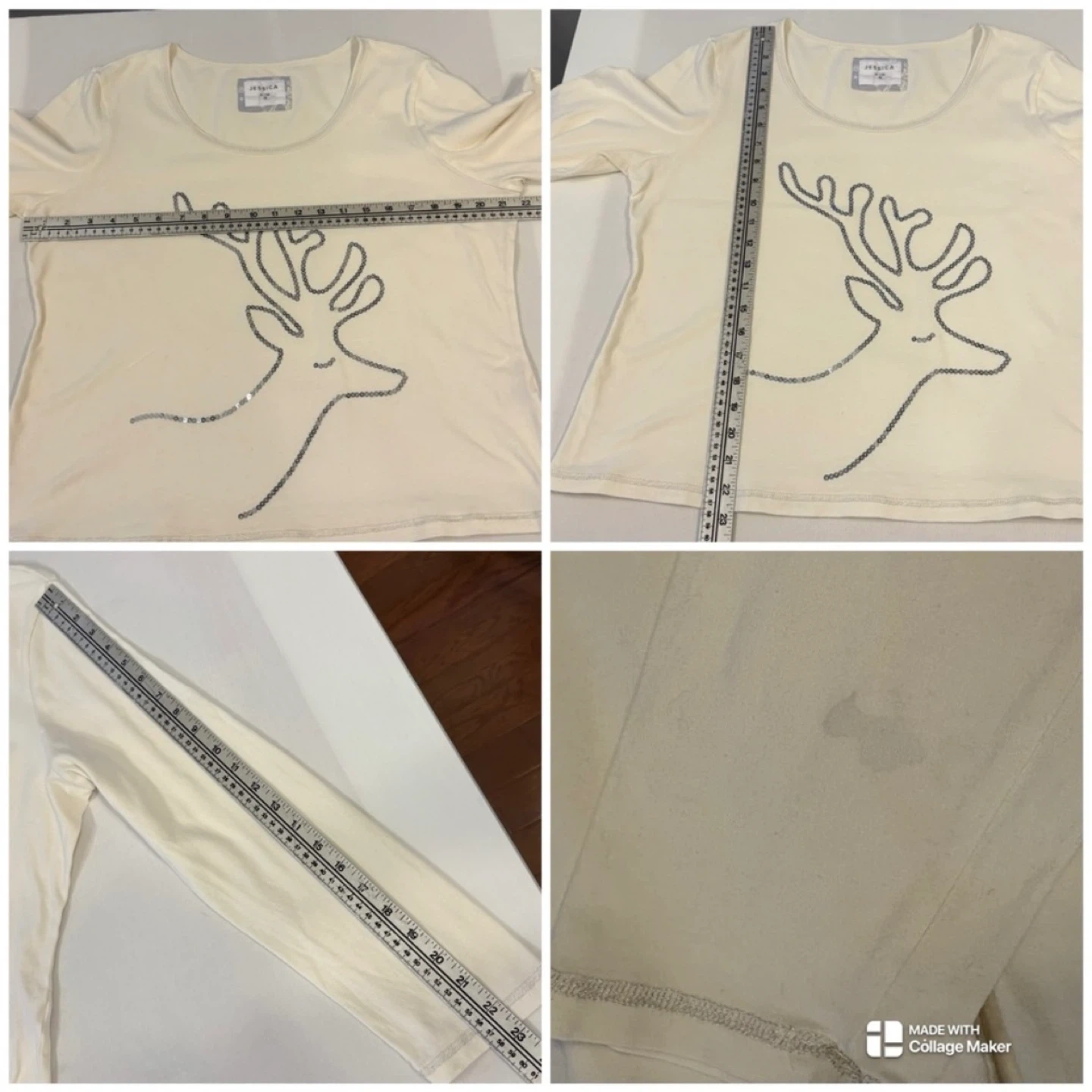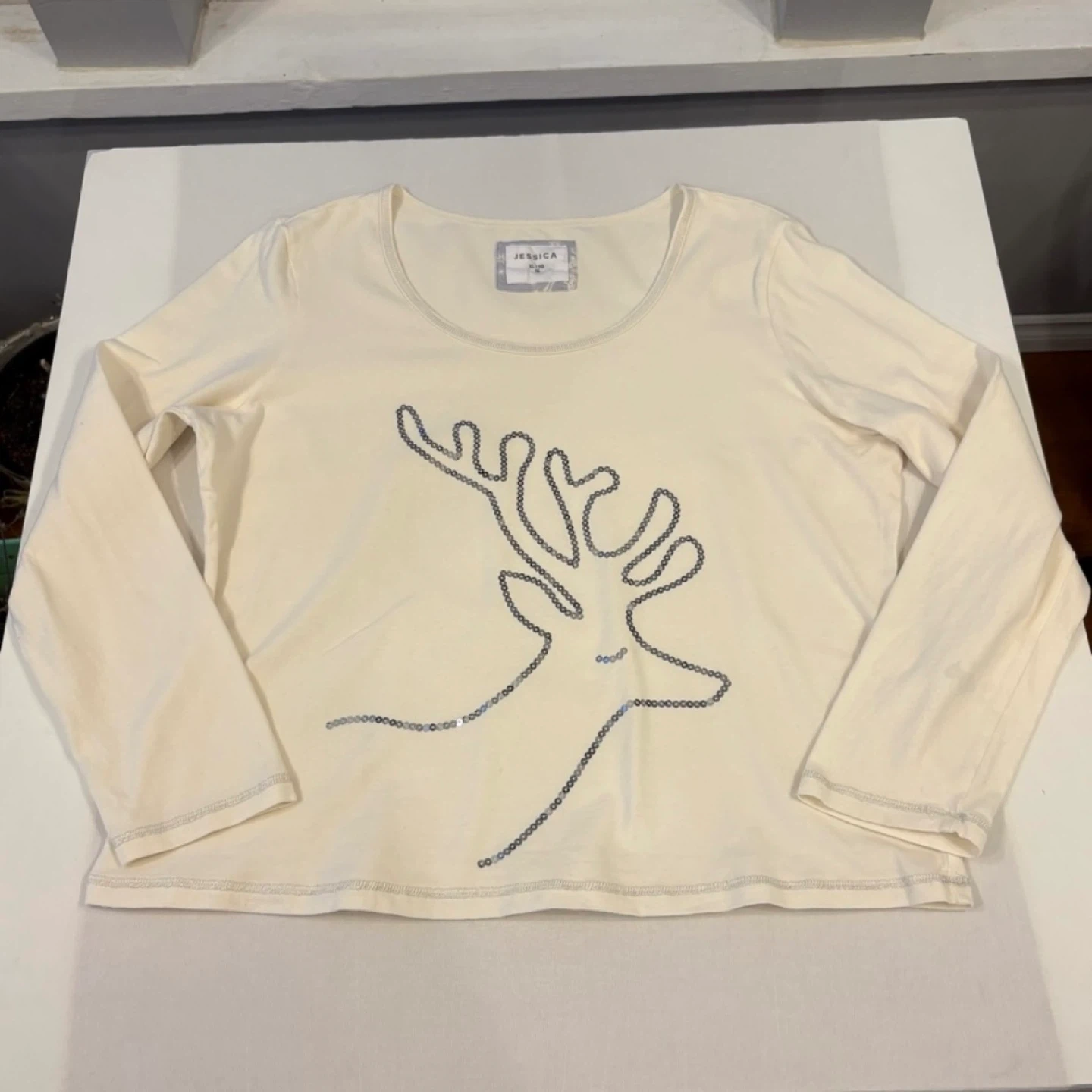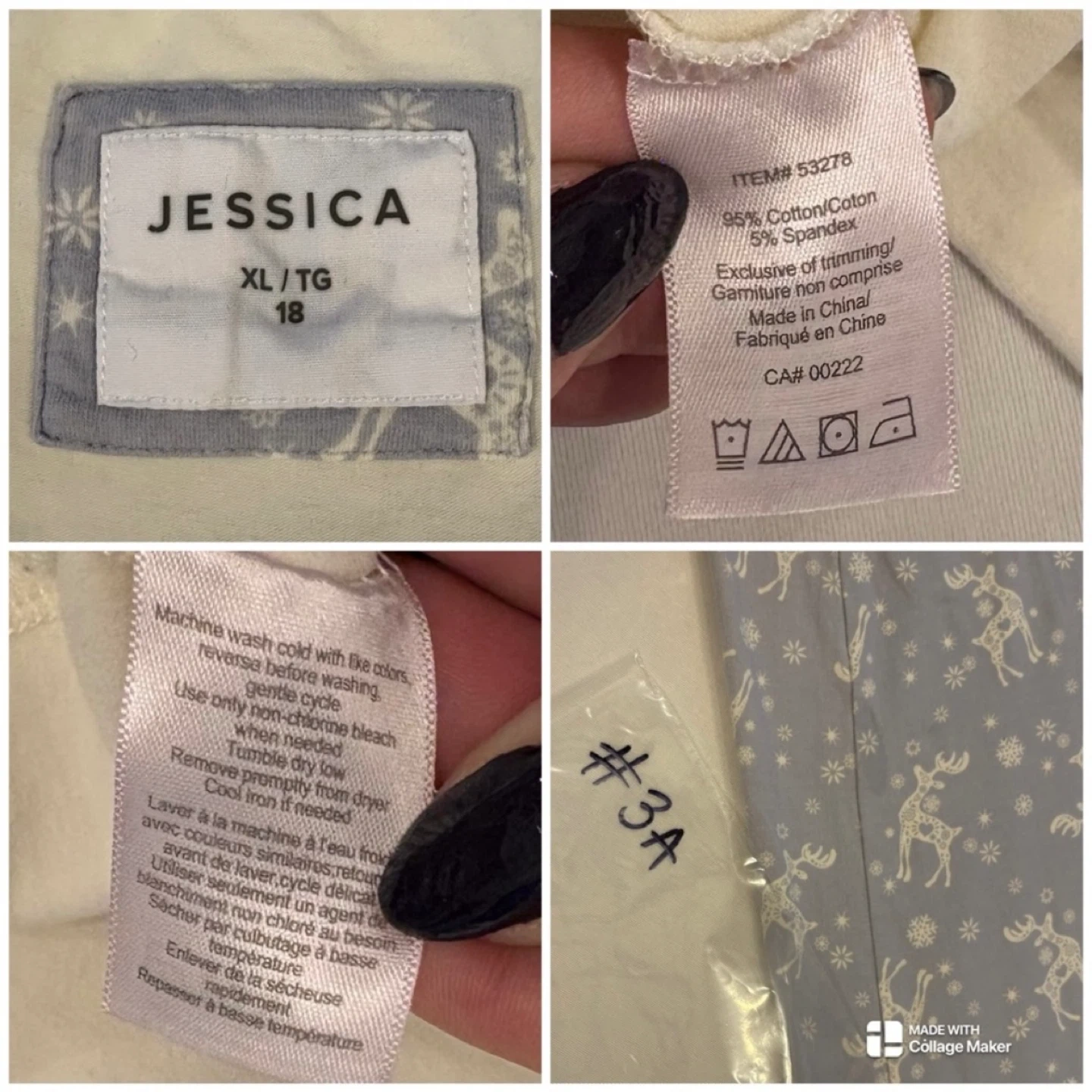 Jessica, pajama set, reindeer, sequin, holiday, Christmas, winter, lounge wear, sleepwear, XL, size 18, cotton blend, loungewear, patterned, snowflake, blue, cream, festive