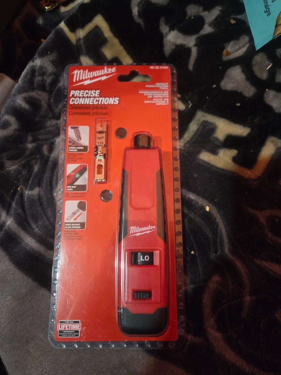 This is a Milwaukee precise connections impact punchdown tool. It features spring-loaded punches, non-slip grips, and quick-release blade storage. It's suitable for making clean network connections.