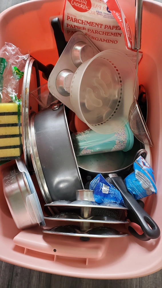 All kitchen utensils pots,pans ,lids ,strainers ,spoons ,knives, forks, cups all kind of utensils you can ever think of