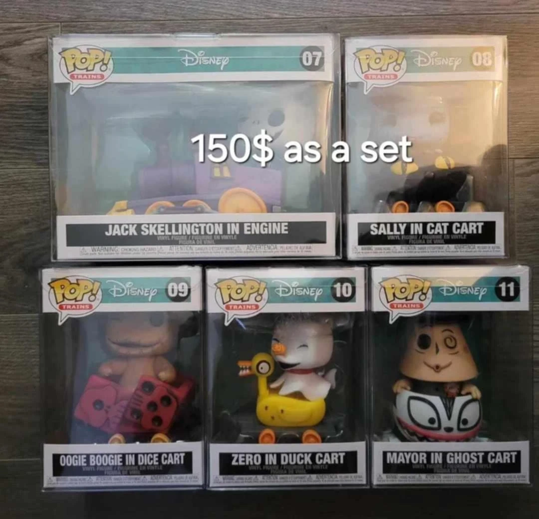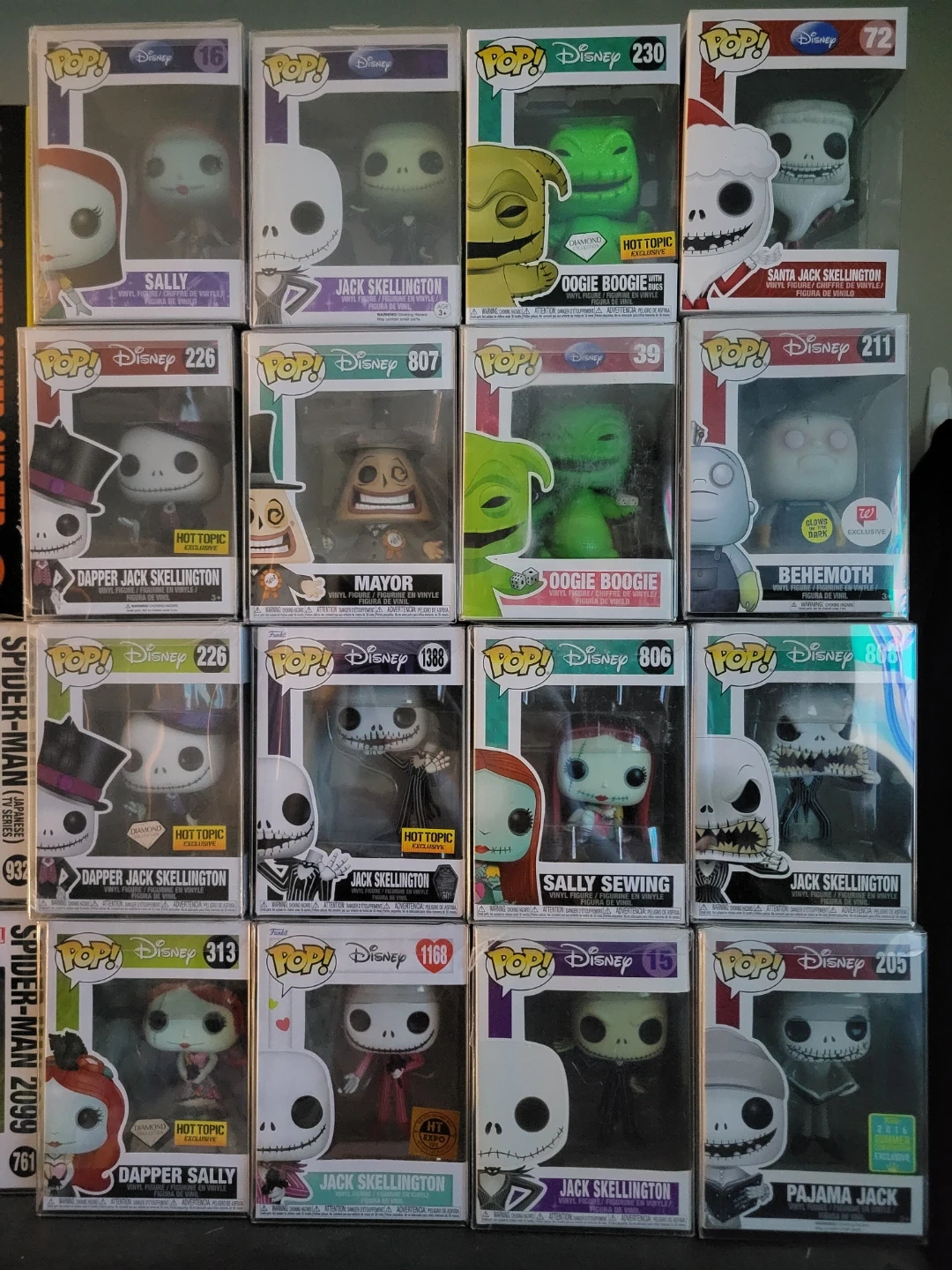 This is a large collection of Funko Pop! figures from Tim Burton's The Nightmare Before Christmas. It includes characters like Jack Skellington, Sally, Mayor, Oogie Boogie, and more. Figures are in their original boxes.