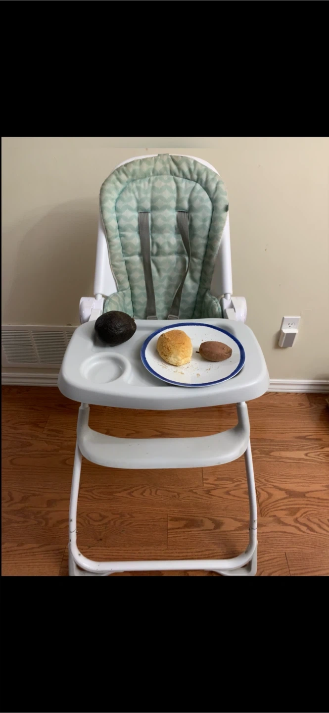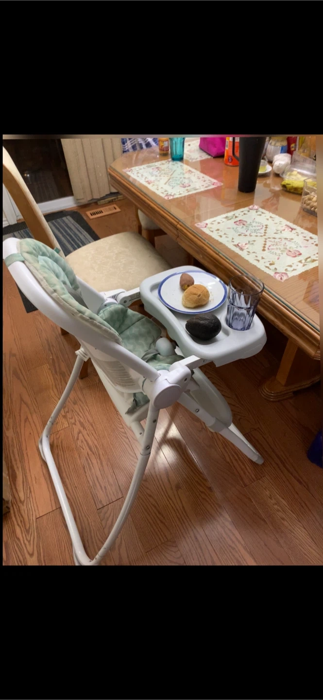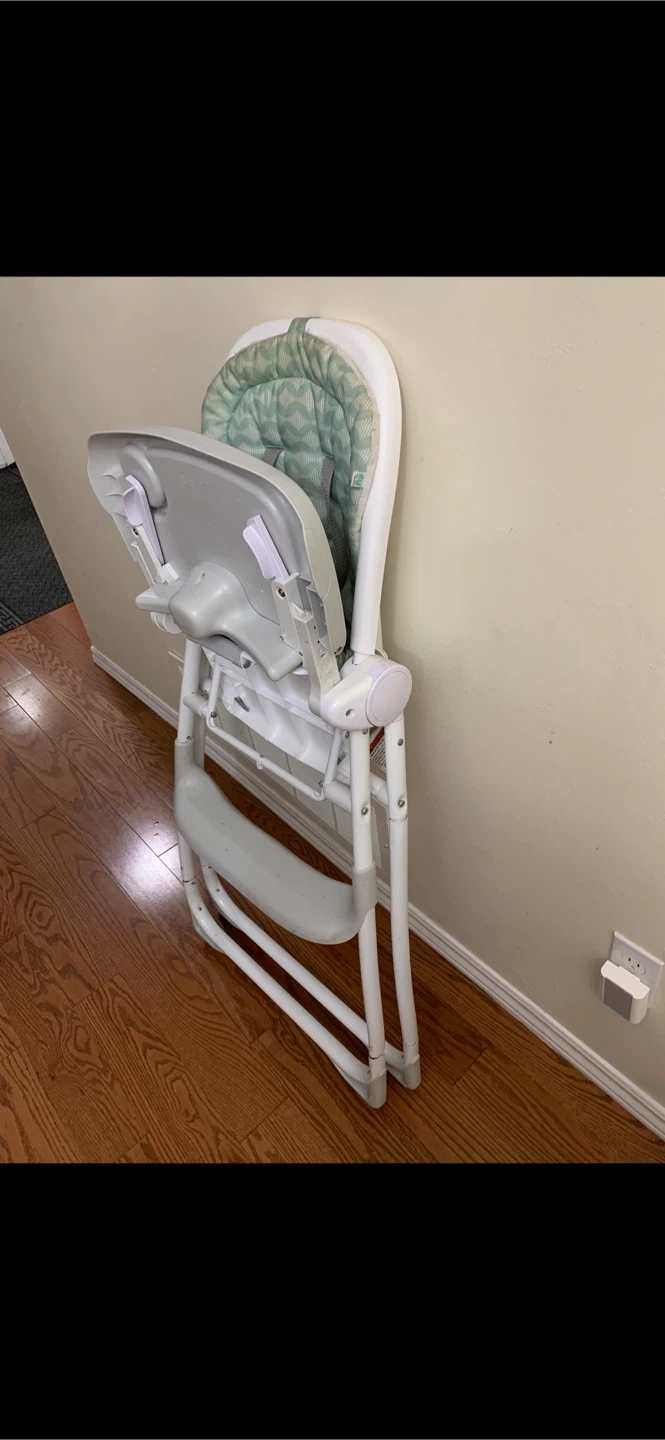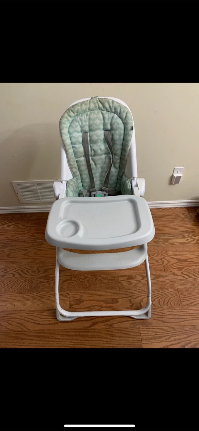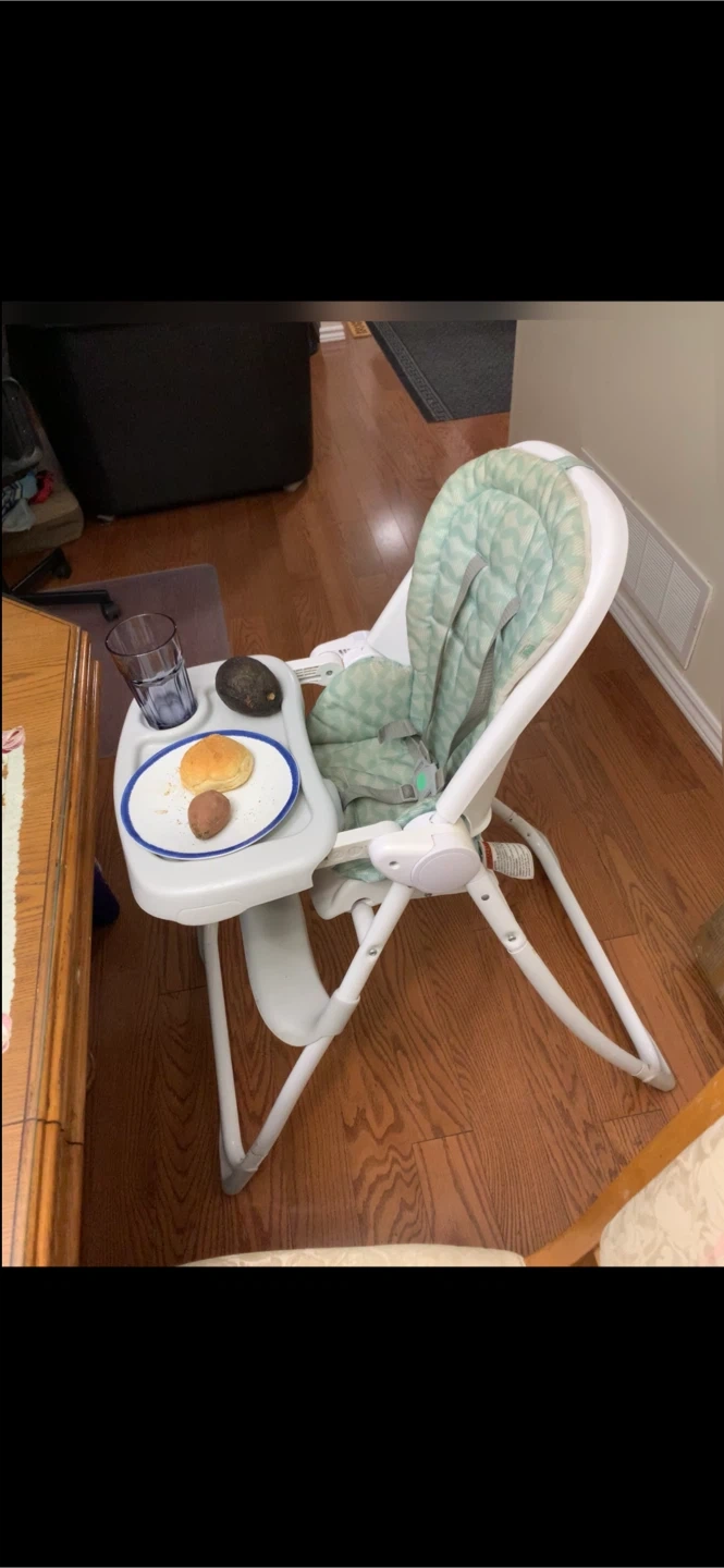 Foldable Baby Eating High Chair Kids grow up fast and the High Chair grows with them. This foldable high chair easily transitions from first foods chair to a traditional high chair. The Feed Easy food tray makes less mess and intimate parent-baby bonding. Kitchen cleanup is a breeze with wipeable materials and a dishwasher-safe main tray and a mini Feed Easy tray. Easily remove the machine-washable seat pad and machine-washable harness and straps. Keep your little one comfy and secure with the 5-point safety harness. The foldable high chair can fold for easy storage. Give baby a seat at the table and make them like family! High chair lets your baby eat with you on the table and teaches them to eat on the table with you, watching you eat and learning to eat properly. Being on eye level contact while you both eat creates a closer bond and relationship with your baby and teaches them how to eat properly. * Easy clean design * Includes BPA-free Feed Easy food tray for less mess feeding * Easy to remove dishwasher safe main tray and mini tray * Machine washable fabric seat pad, harness, and straps * Keeps little ones secure with 5-point safety harness. * Foldable for more space * Strong and sturdy build Can be picked up or delivered Cheap - message me