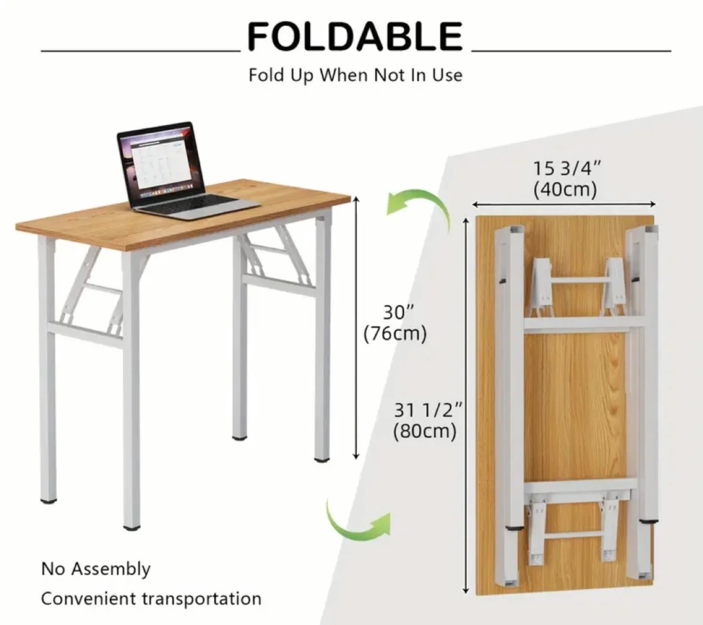 0Selling a foldable desk that's super convenient for small spaces! It requires no assembly and is easy to transport. - Height: 30 inches (76cm) - Folded dimensions: 15 3/4 inches (40cm) wide, 31 1/2 inches (80cm) tall It's perfect for setting up a temporary workspace or for when you need a desk that can be easily stored away