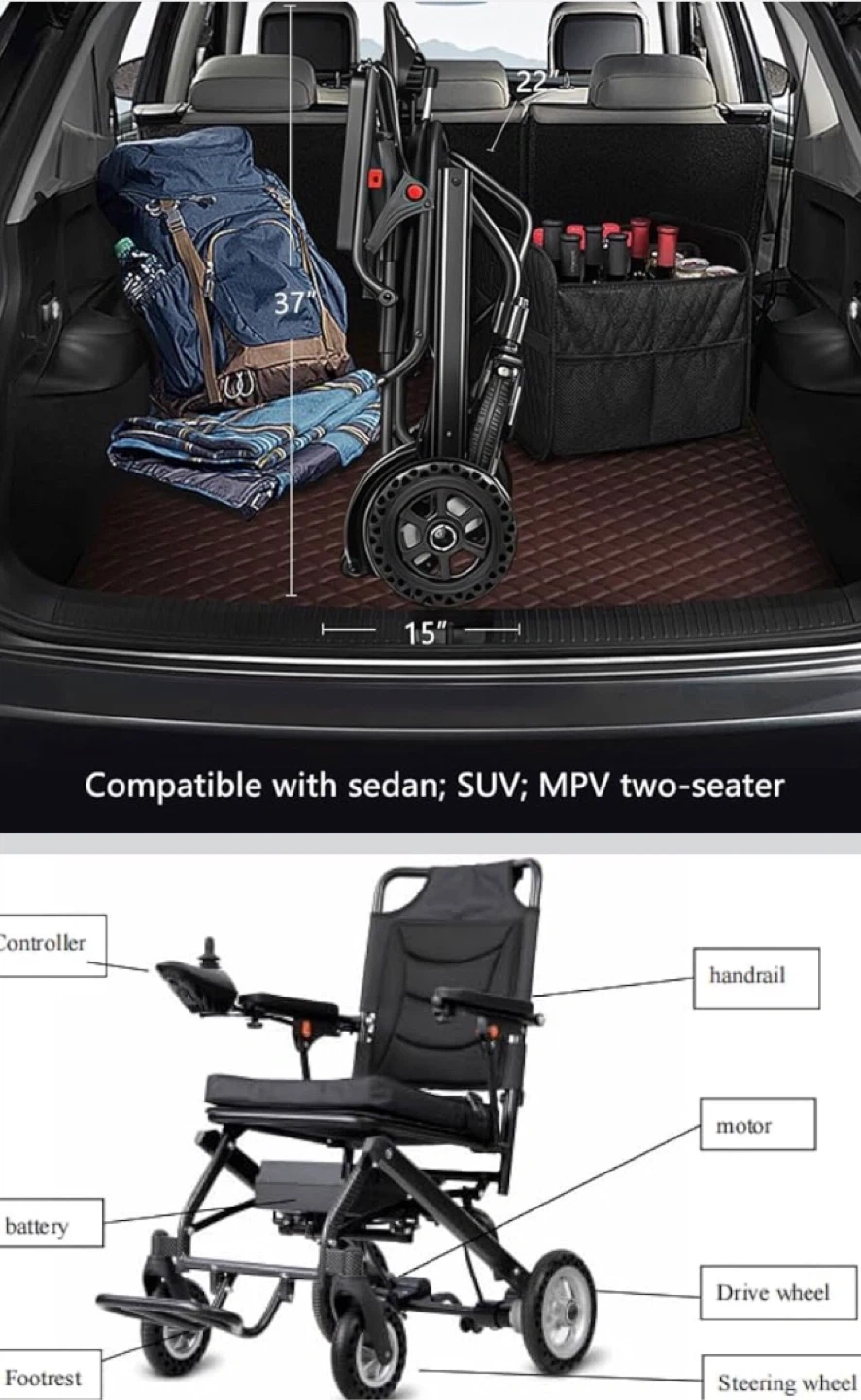 10Selling a foldable electric wheelchair that's perfect for anyone needing a lightweight and portable mobility solution! It features intelligent control with a small turning radius, making it easy to maneuver. It's compatible with sedans, SUVs, and MPV two-seaters. The dimensions when folded are approximately 37" x 15".