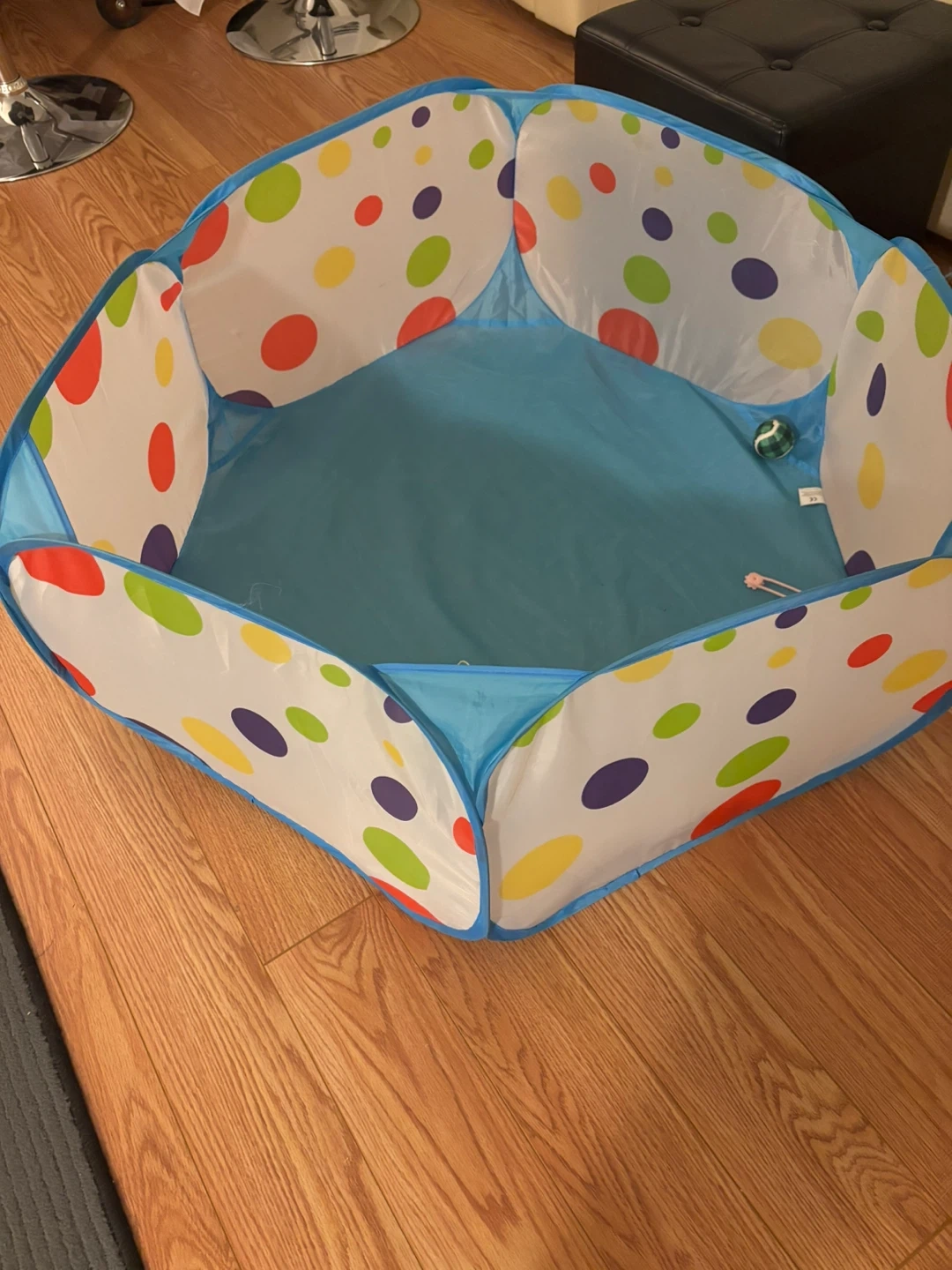 268This polka dot playpen is perfect for keeping your little one entertained and safe! It's in great condition and ready for a new home. It features a fun polka dot design with a blue trim, making it a colourful addition to any playroom or living space Cash and pick up only