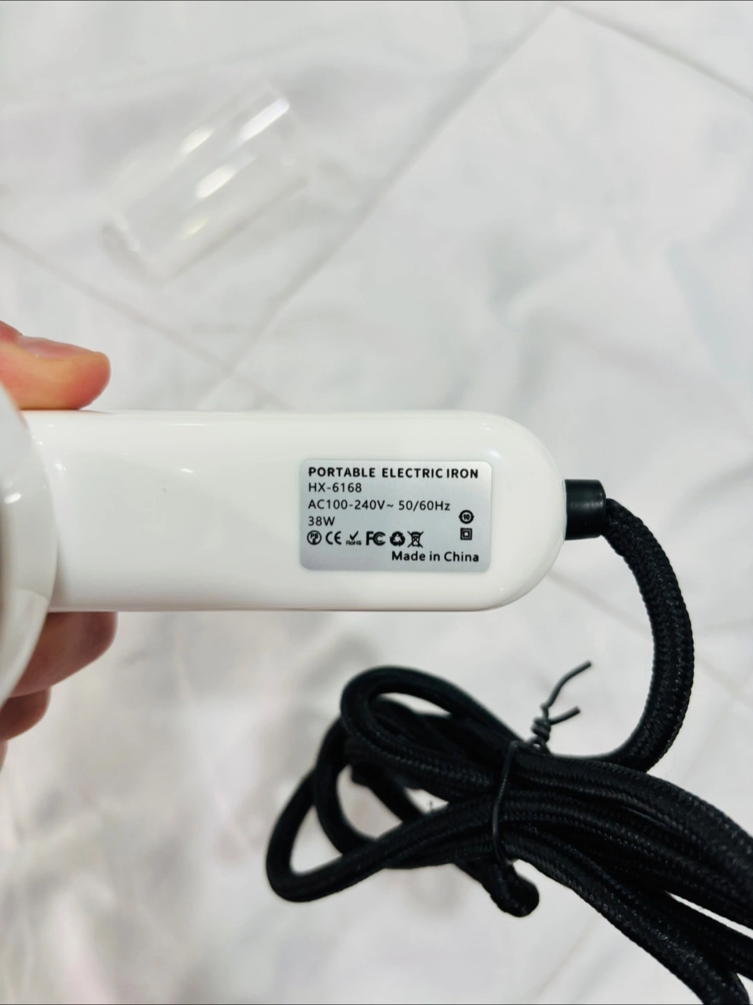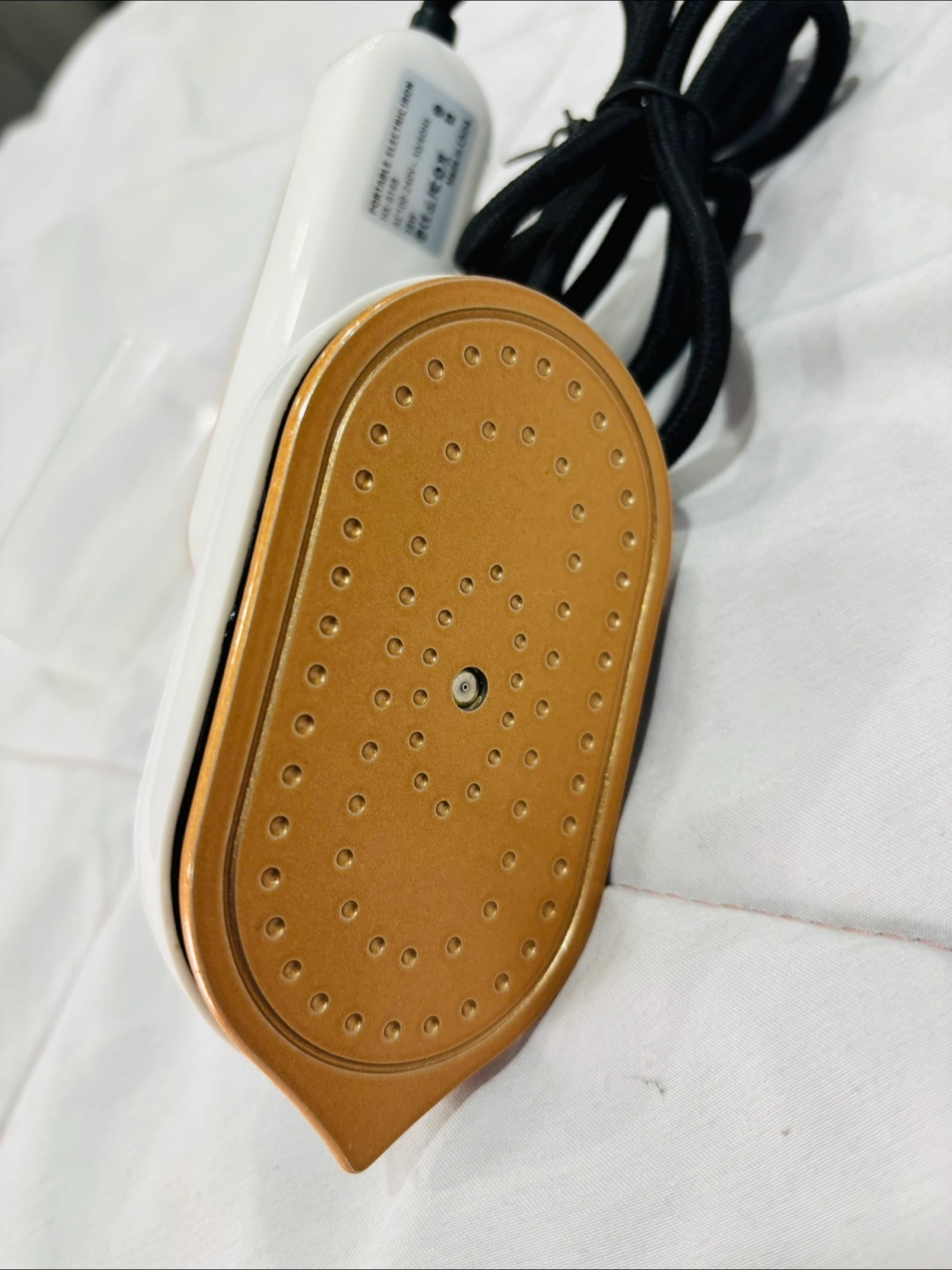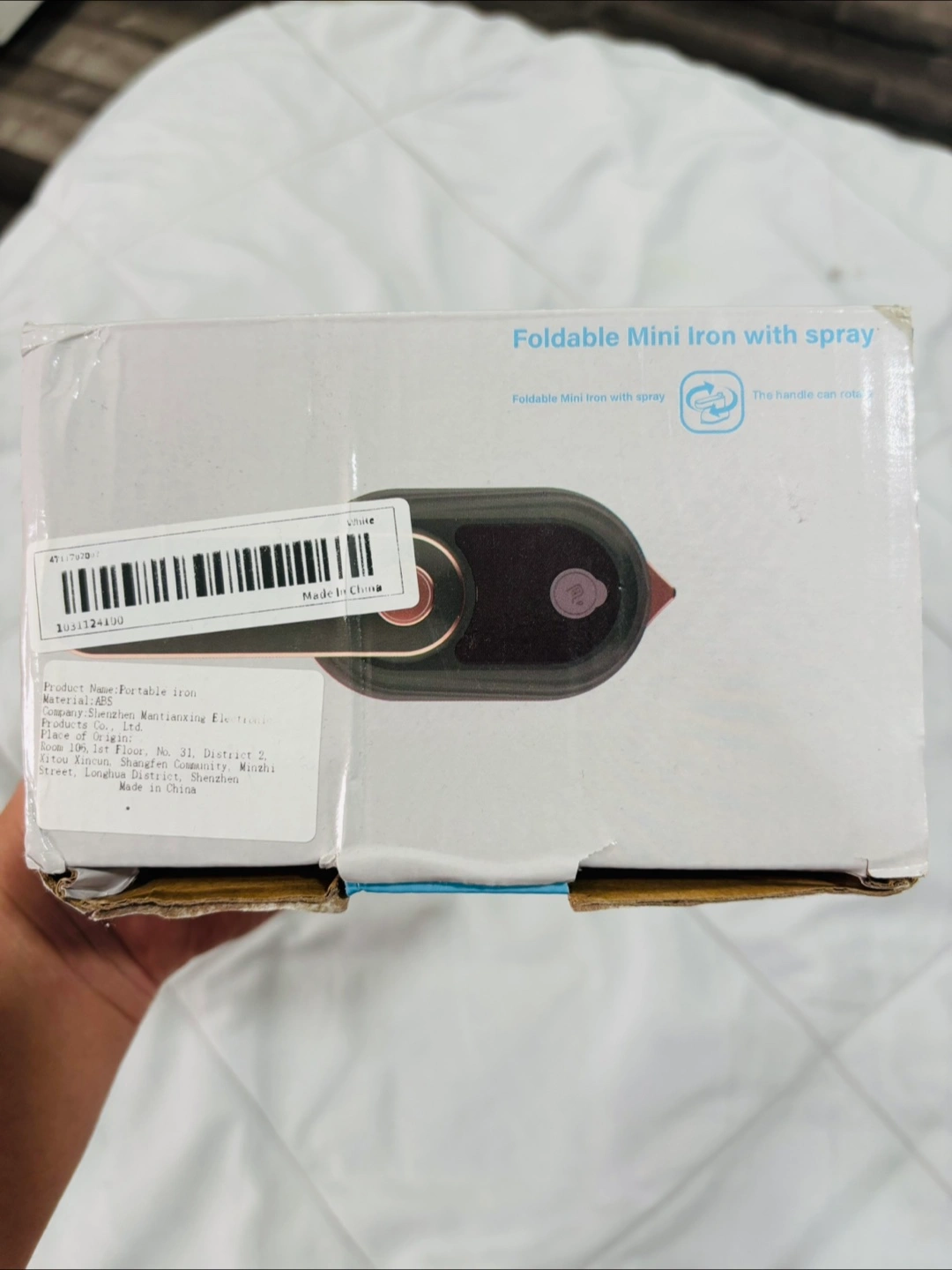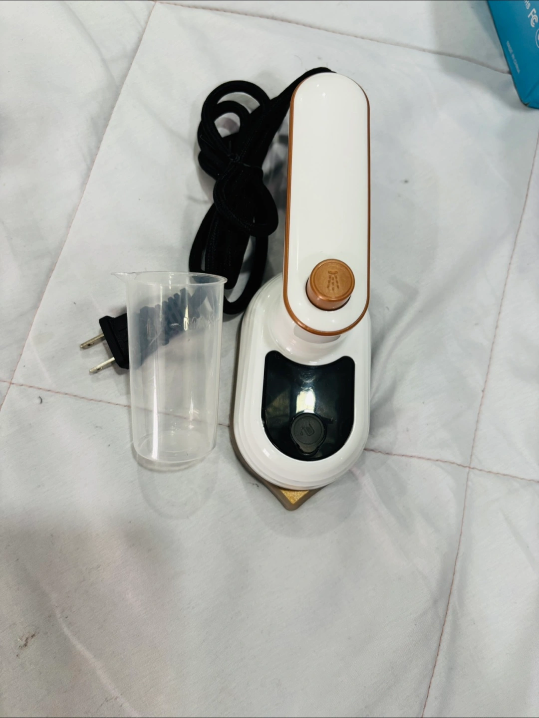 Selling a foldable mini iron with spray! It's super handy for travel or quick touch-ups. The handle rotates for easy use, and it comes with a water cup for the spray function. Never used.