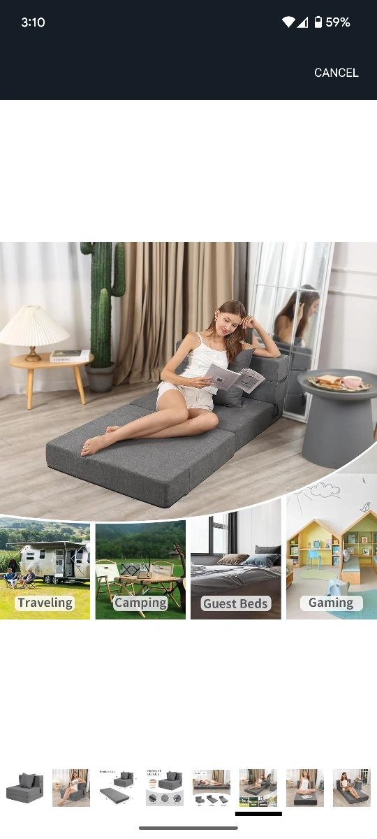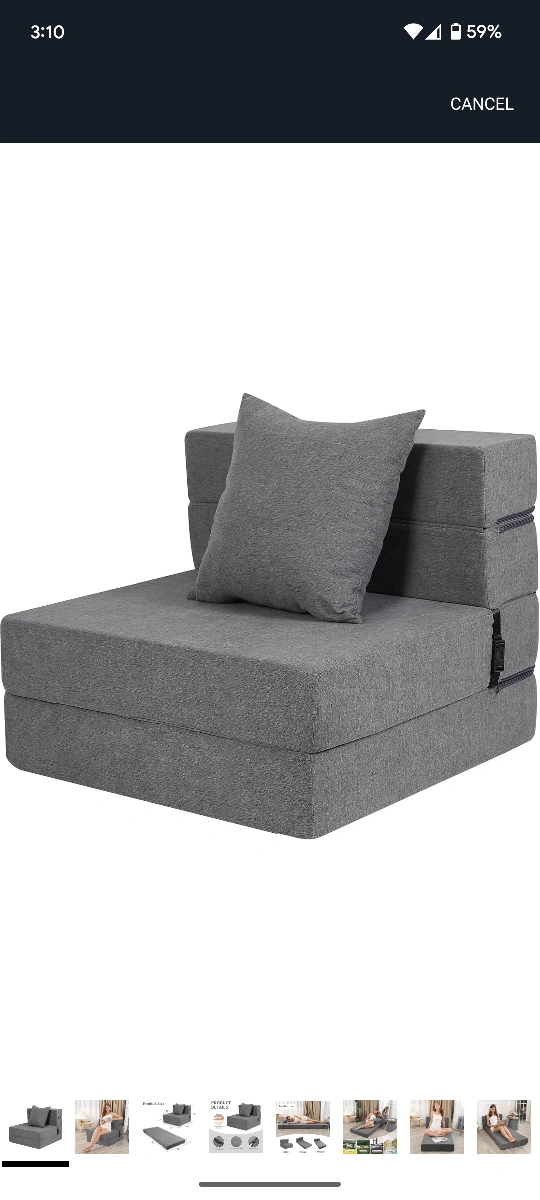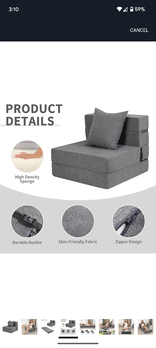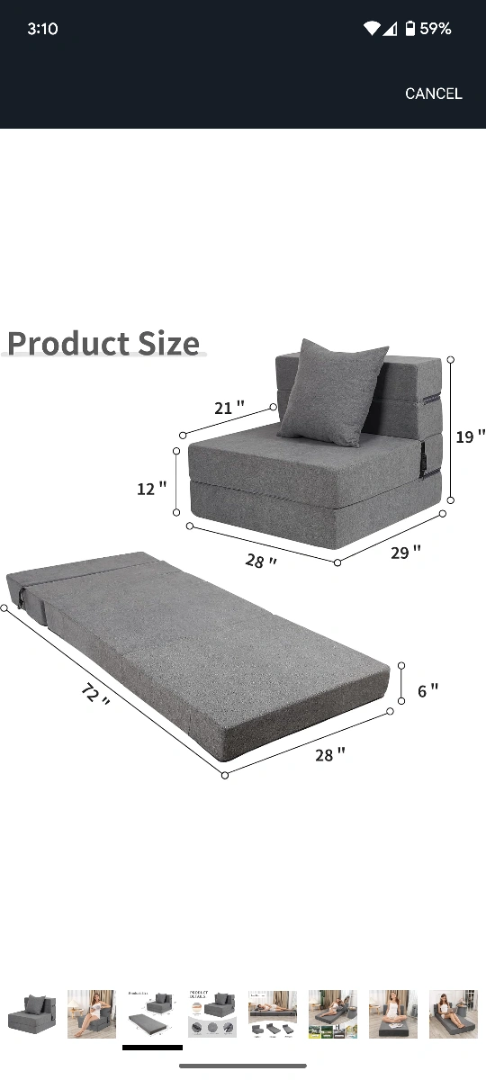 Convertible sofa bed mattress, perfect for small spaces! This versatile piece can be used as a sofa, chaise lounge, or bed. It features a high-density sponge for comfort and a skin-friendly fabric. The durable buckle and zipper design add to its functionality. Dimensions: - Sofa: 21" x 29" x 19" - Bed: 28" x 72" x 6"