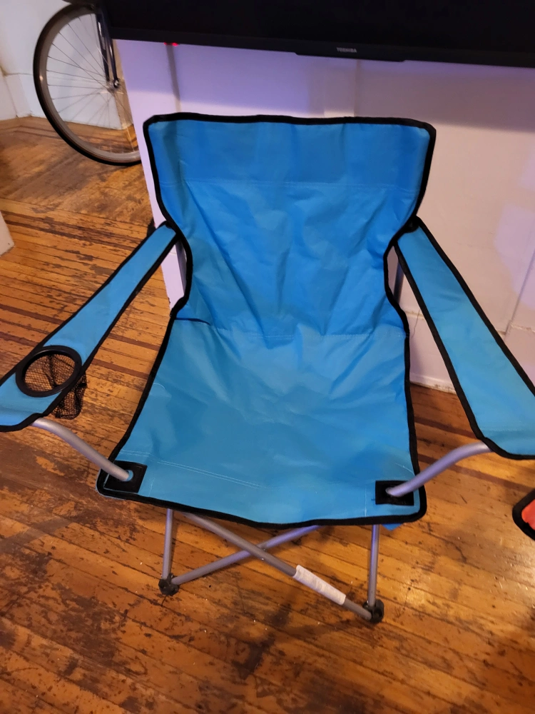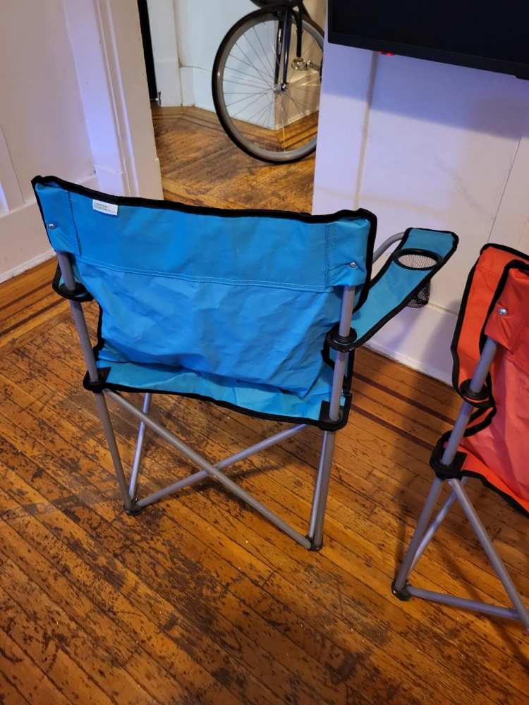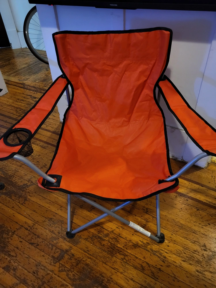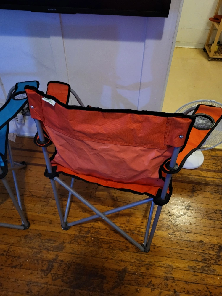 71Two folding camping chairs are up for grabs! One is a vibrant blue, and the other is a bright orange. They're perfect for camping, picnics, or just relaxing in the backyard. Both chairs are in good condition and comes with their own bag holders. $15 Pick up only