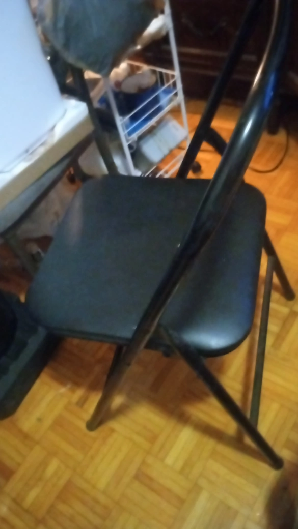 20Selling a black folding chair. It's in good condition and perfect for extra seating when you have guests over or for any event where you need a portable chair. Folds up easily for convenient storage