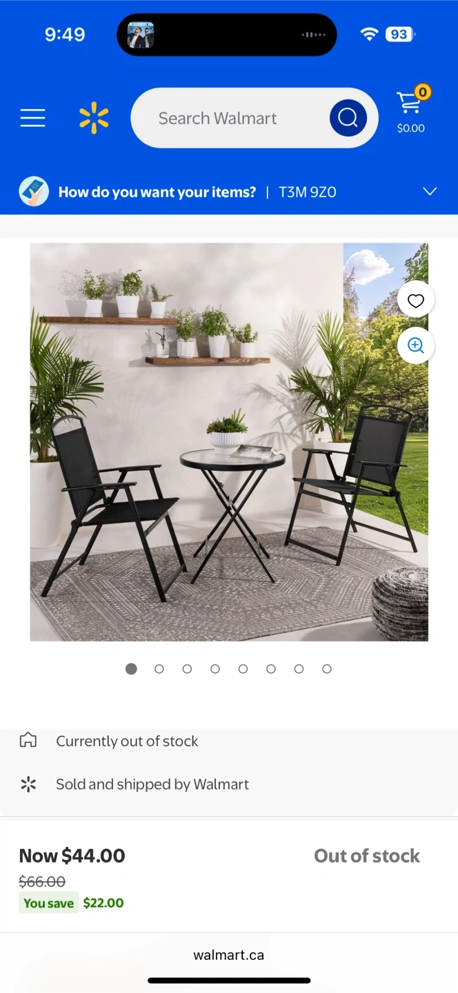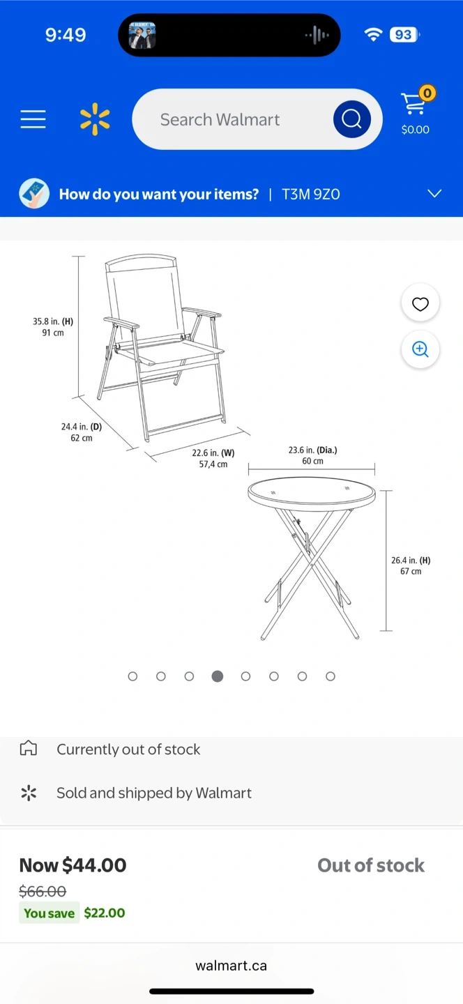 Selling a Mainstays folding bistro set! It includes two folding chairs and a small round table, perfect for a balcony or small patio. Originally bought for $66, looking to sell for 40$ obo
