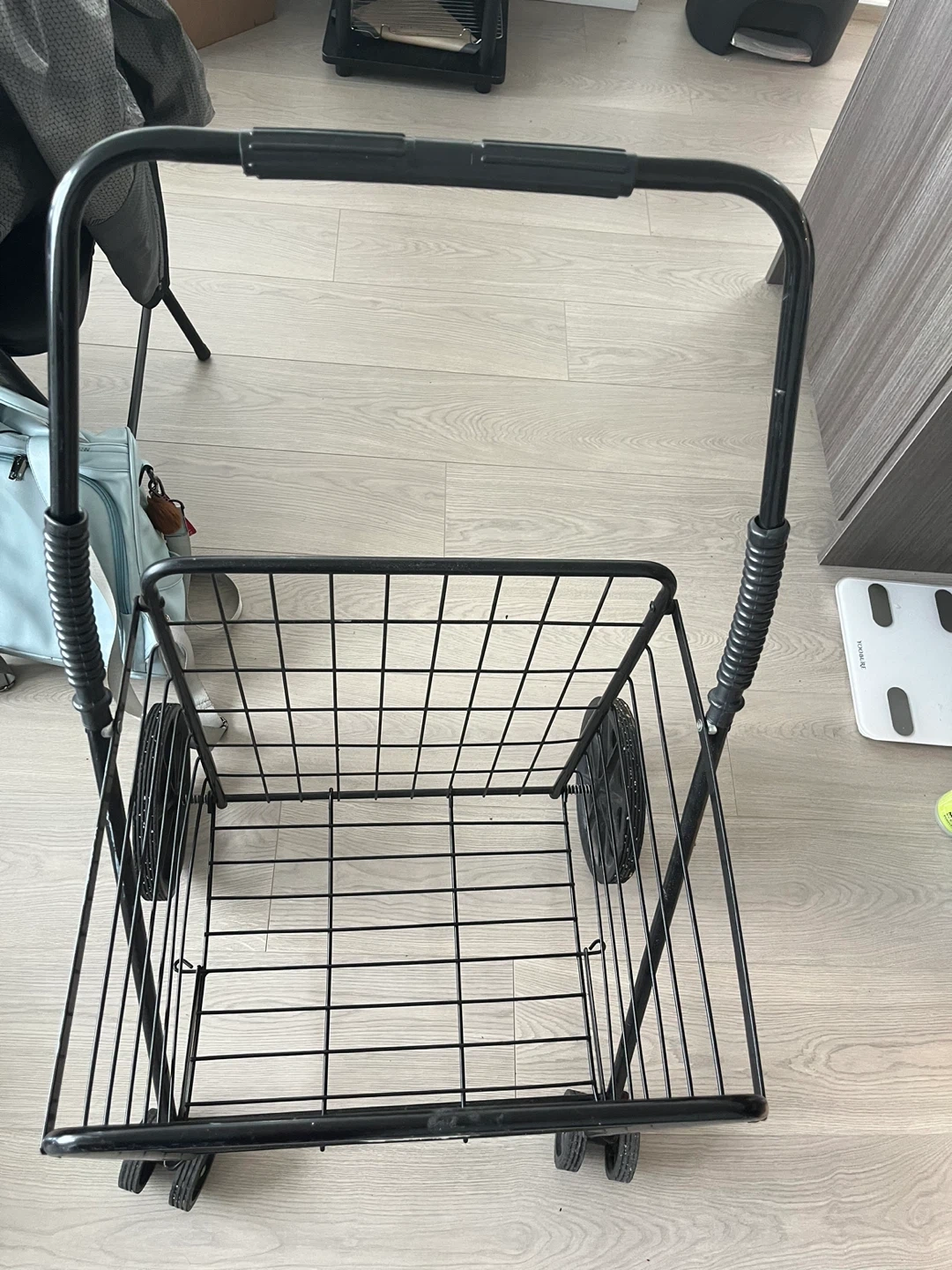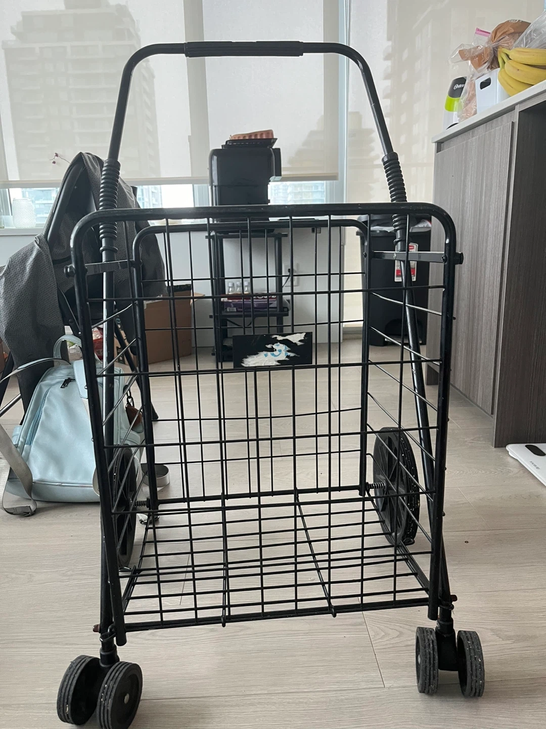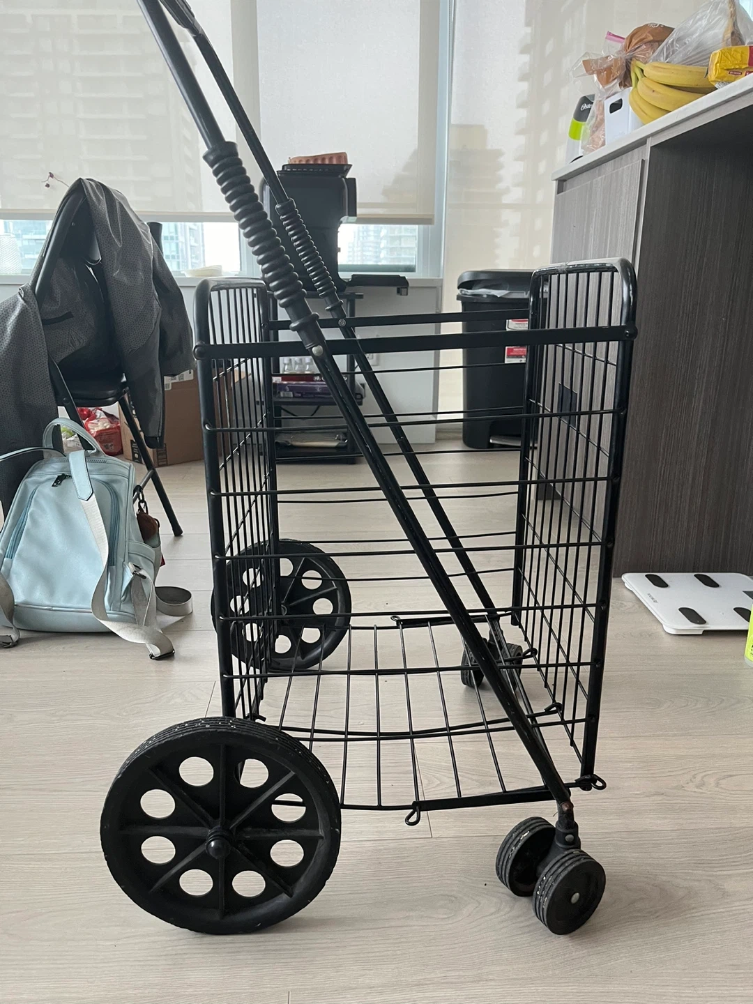 Selling a handy folding shopping cart in black. It's perfect for groceries, laundry, or anything else you need to haul around. The cart folds up for easy storage when not in use. It's in great shape and ready for a new home! Originally bought for 50$ Open to negotiation, pickup only.