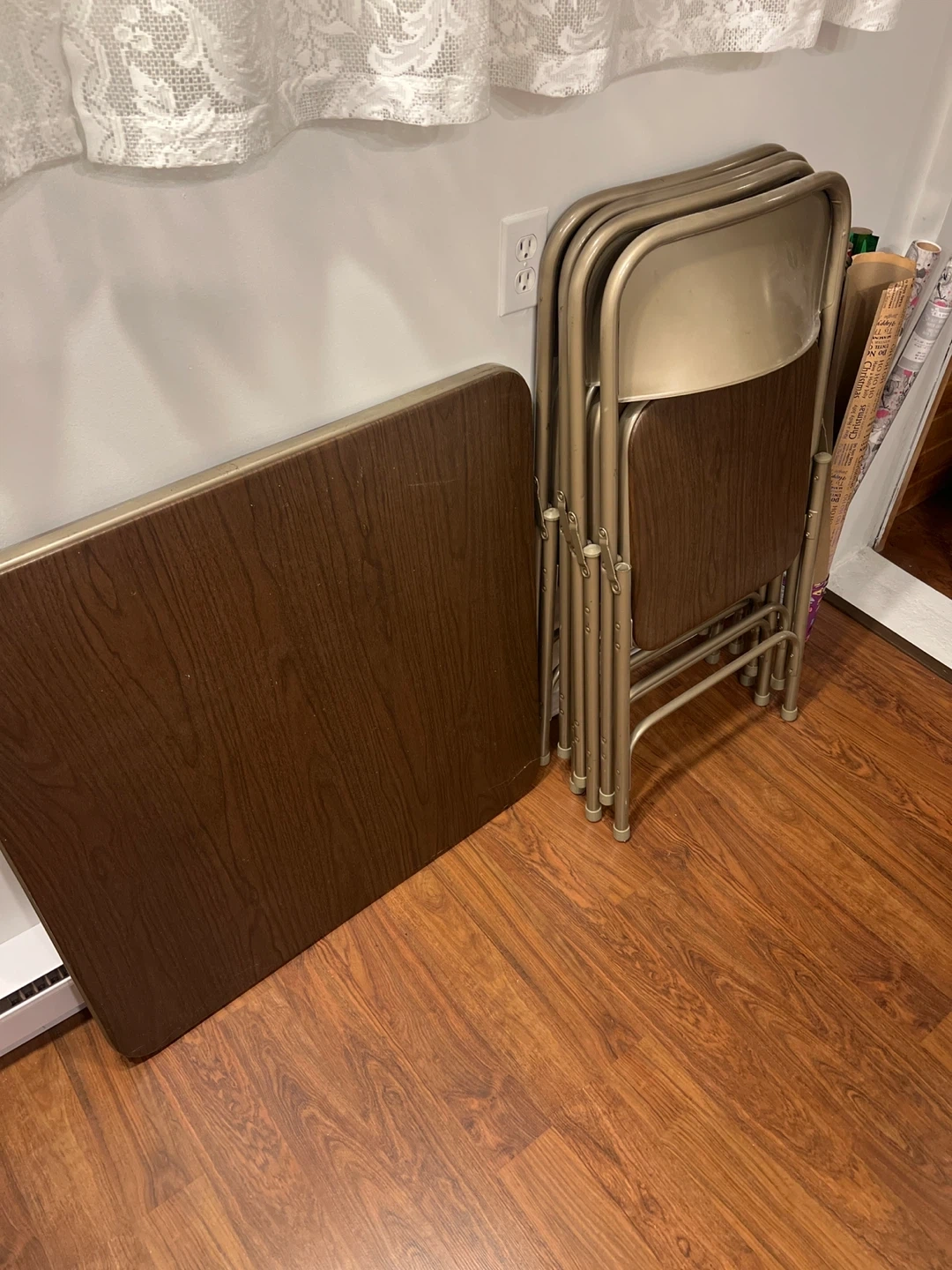 Vintage folding table and chairs set. Perfect for extra seating or small spaces. The table has a wood-look top, and the chairs are a matching metallic colour. Great for gatherings or when you need a temporary setup. Pick up in Orleans. Please check out my other ads as I continue to go through my late wife’s & father’s estates.