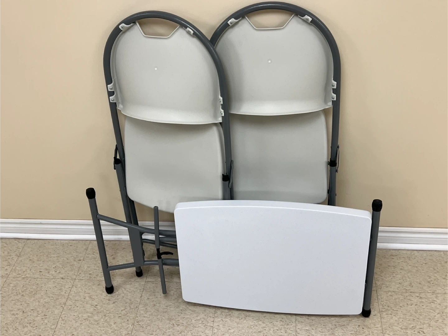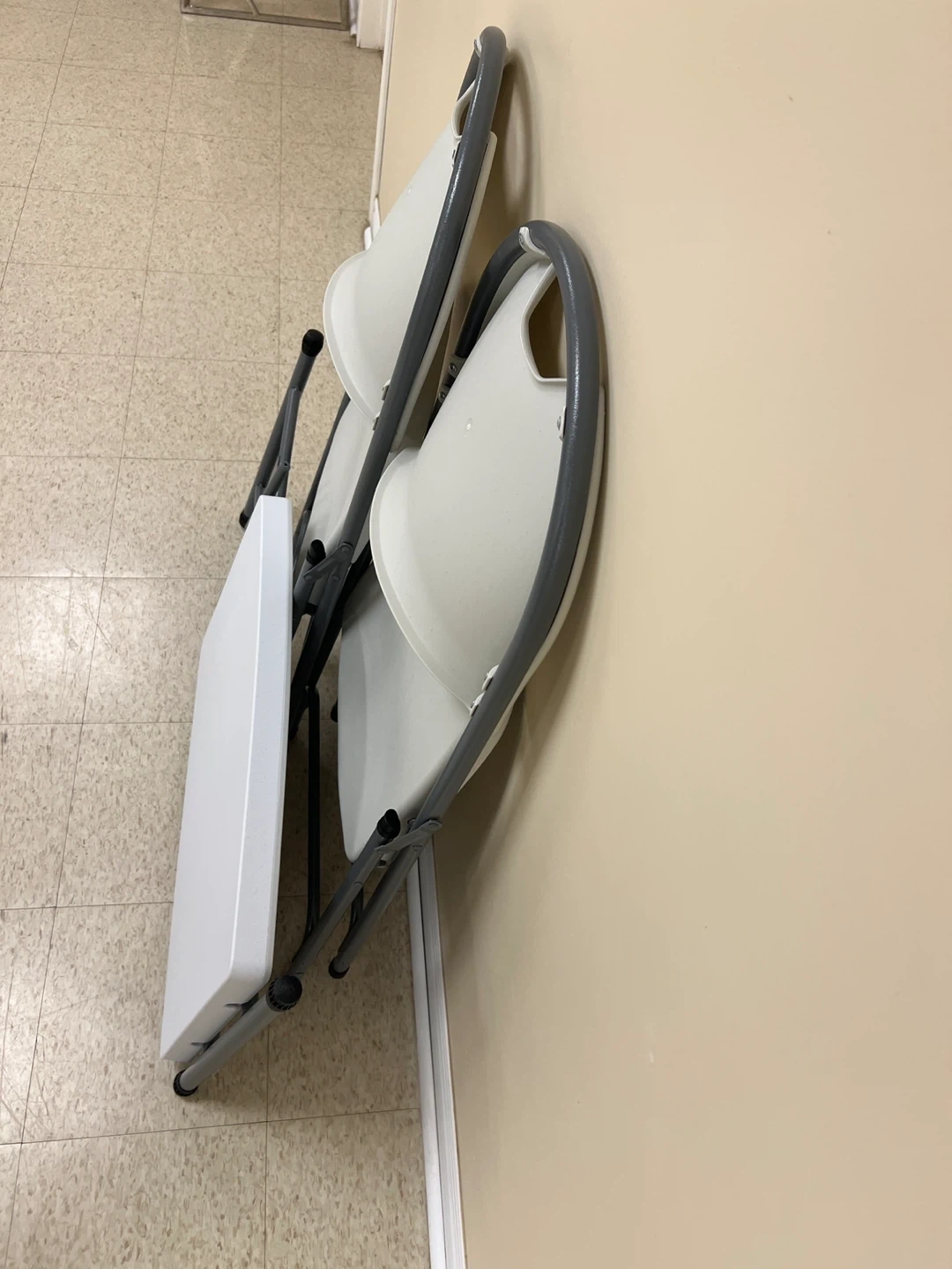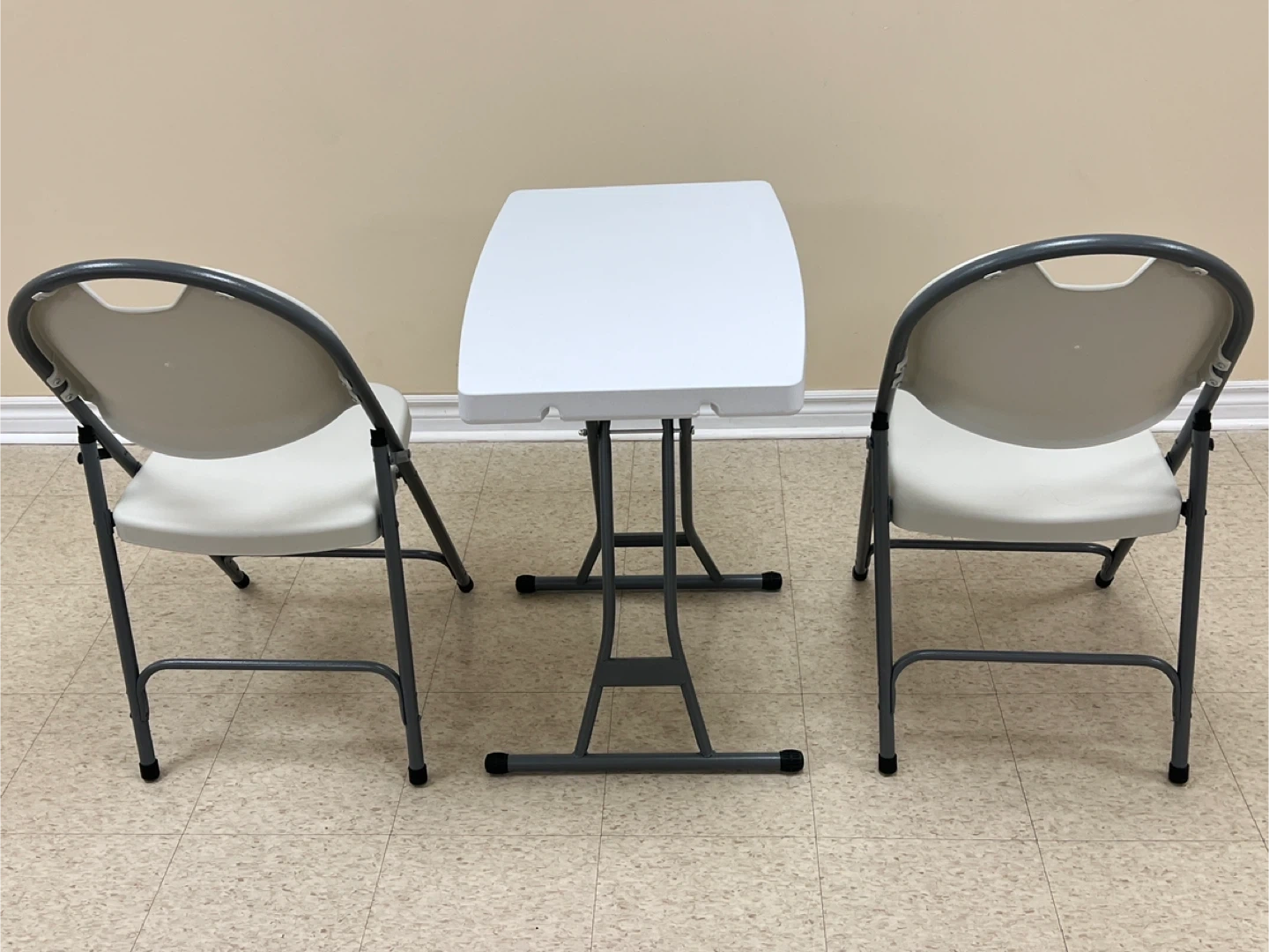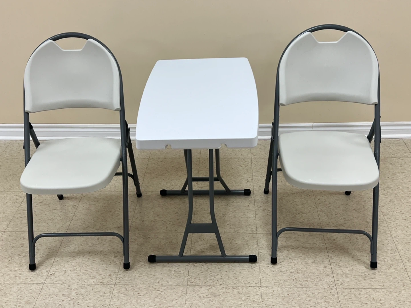 23Selling a handy folding table and chairs set, perfect for small spaces or extra seating! The set includes a small folding table and two folding chairs. Everything is in great shape and ready to use for your next gathering or project.