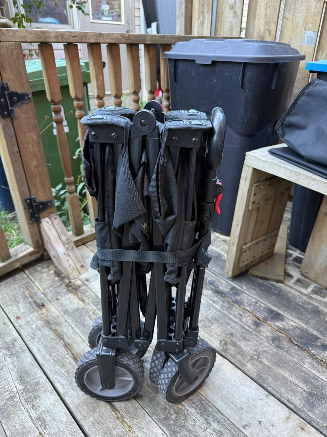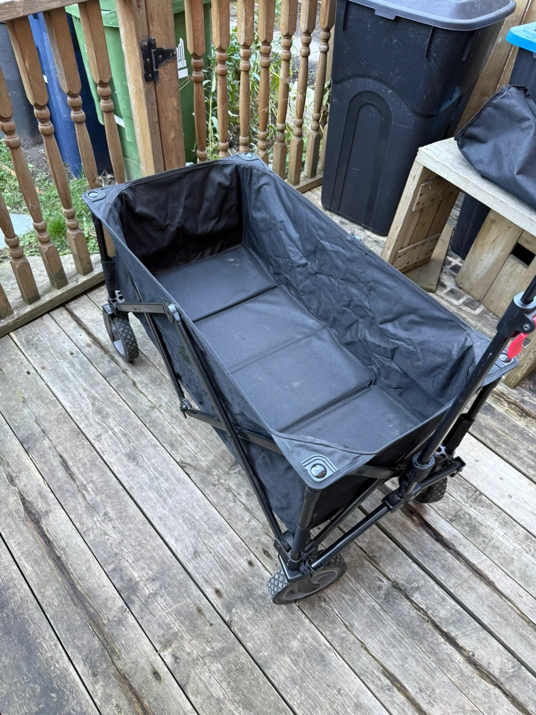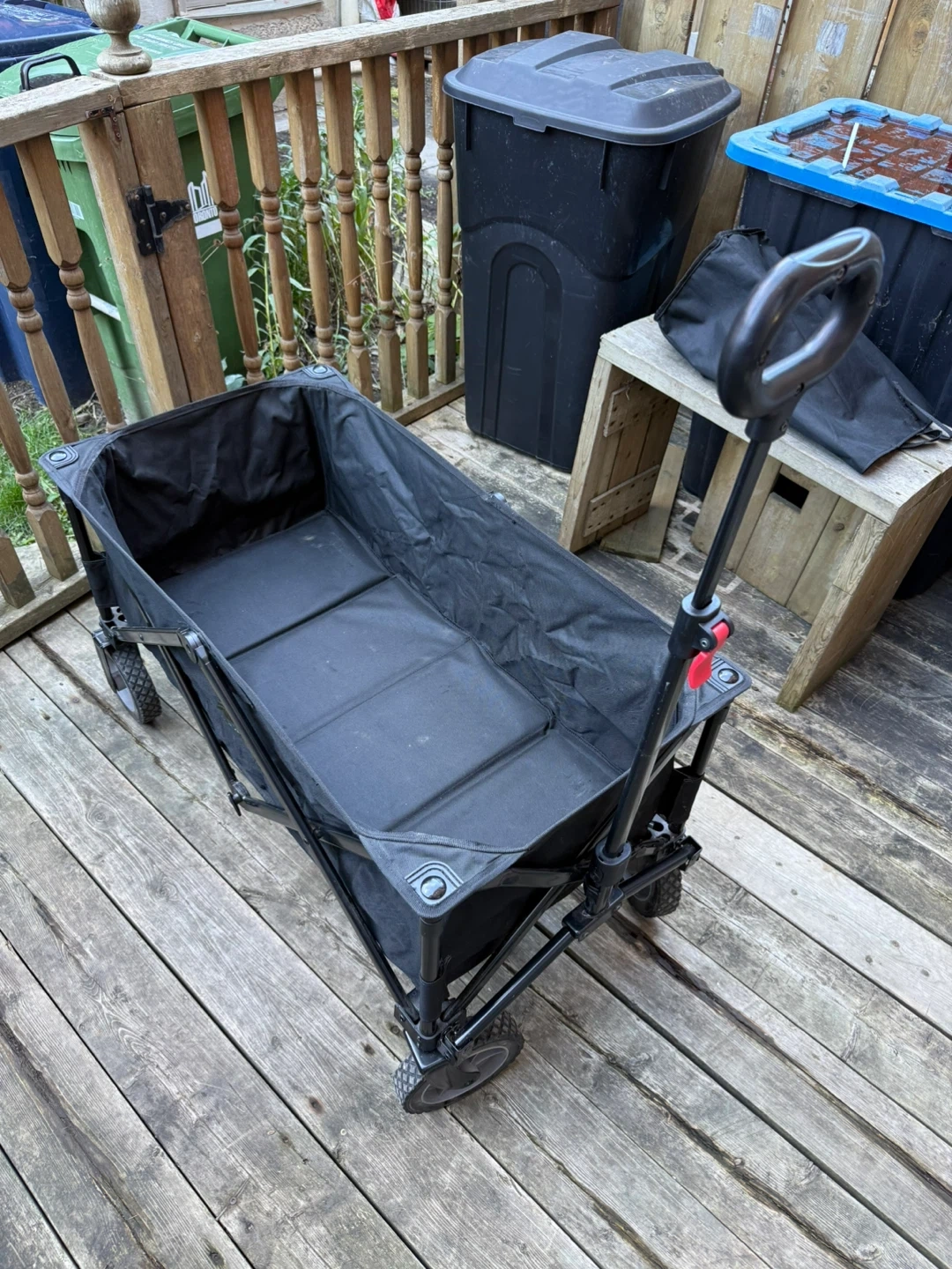 107Selling a handy folding wagon cart in black! It's in great shape and perfect for hauling groceries, camping gear, or anything else you need to move around. It folds up easily for storage and transport, making it super convenient. A great addition for anyone who needs a little extra help with carrying things Brand: Woods Great condition, no damage Pick-up and cash only Looking to sell, fast, best offer will be accepted