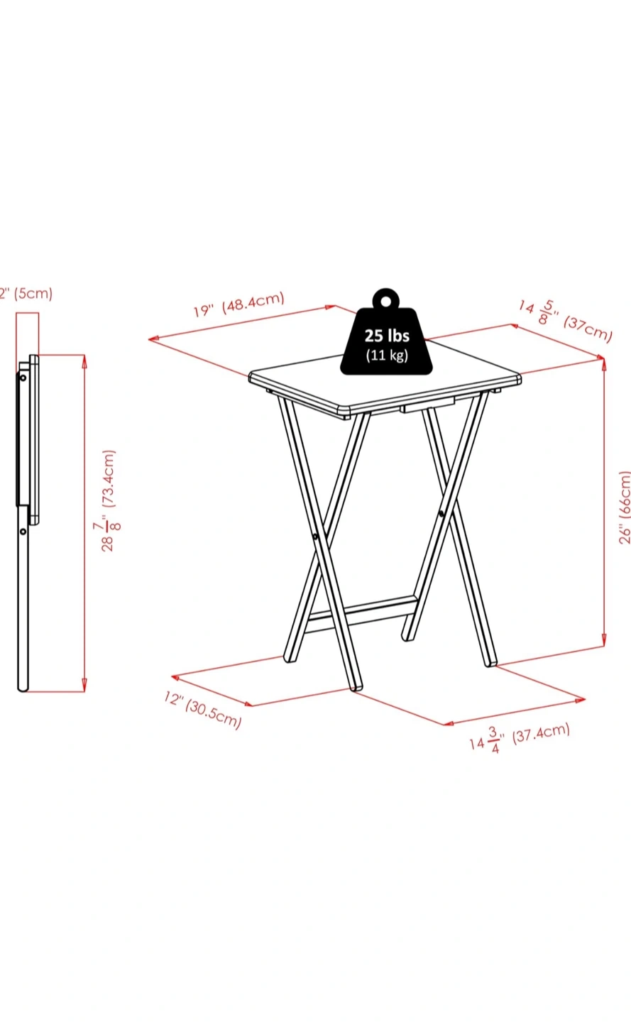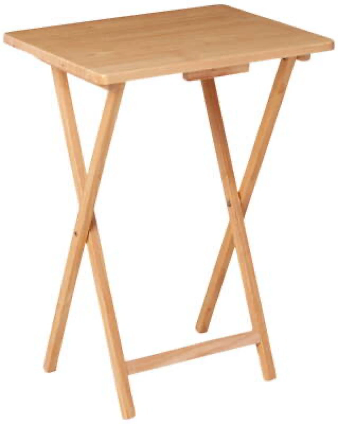 Selling a handy folding wooden tray table! It's perfect for snacks, drinks, or even as a small workspace. It is lightweight and portable. Dimensions: - Height: 26 inches (66 cm) - Top: 19 inches x 14 5/8 inches (48.4 cm x 37 cm) - Folded: 28 7/8 inches x 2 inches (73.4 cm x 5 cm)