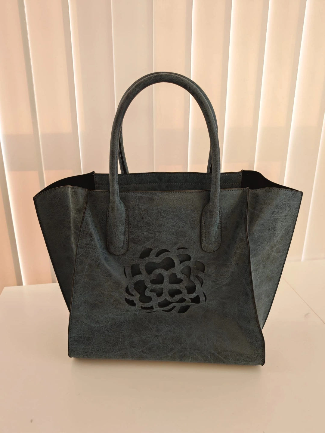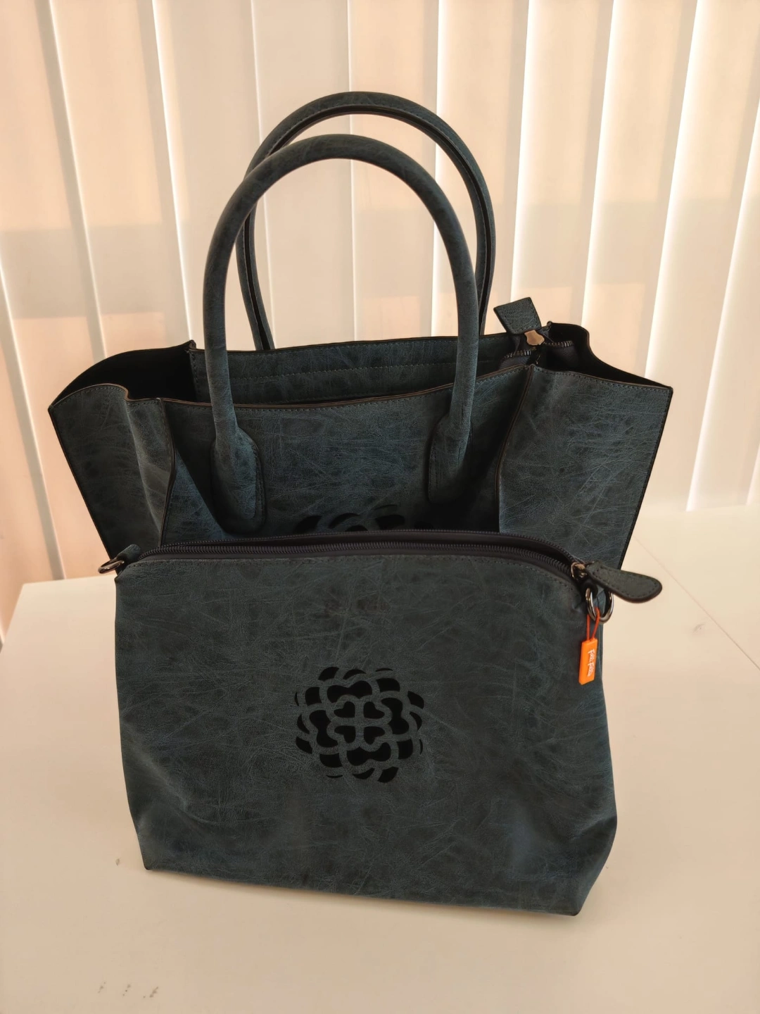 167Brand new bag. Features a unique cut-out design with zipper. Includes a smaller matching zippered pouch. Two top handles. Approximately 30cm tall. No pet and non-smoking home Pick up near North York Centre