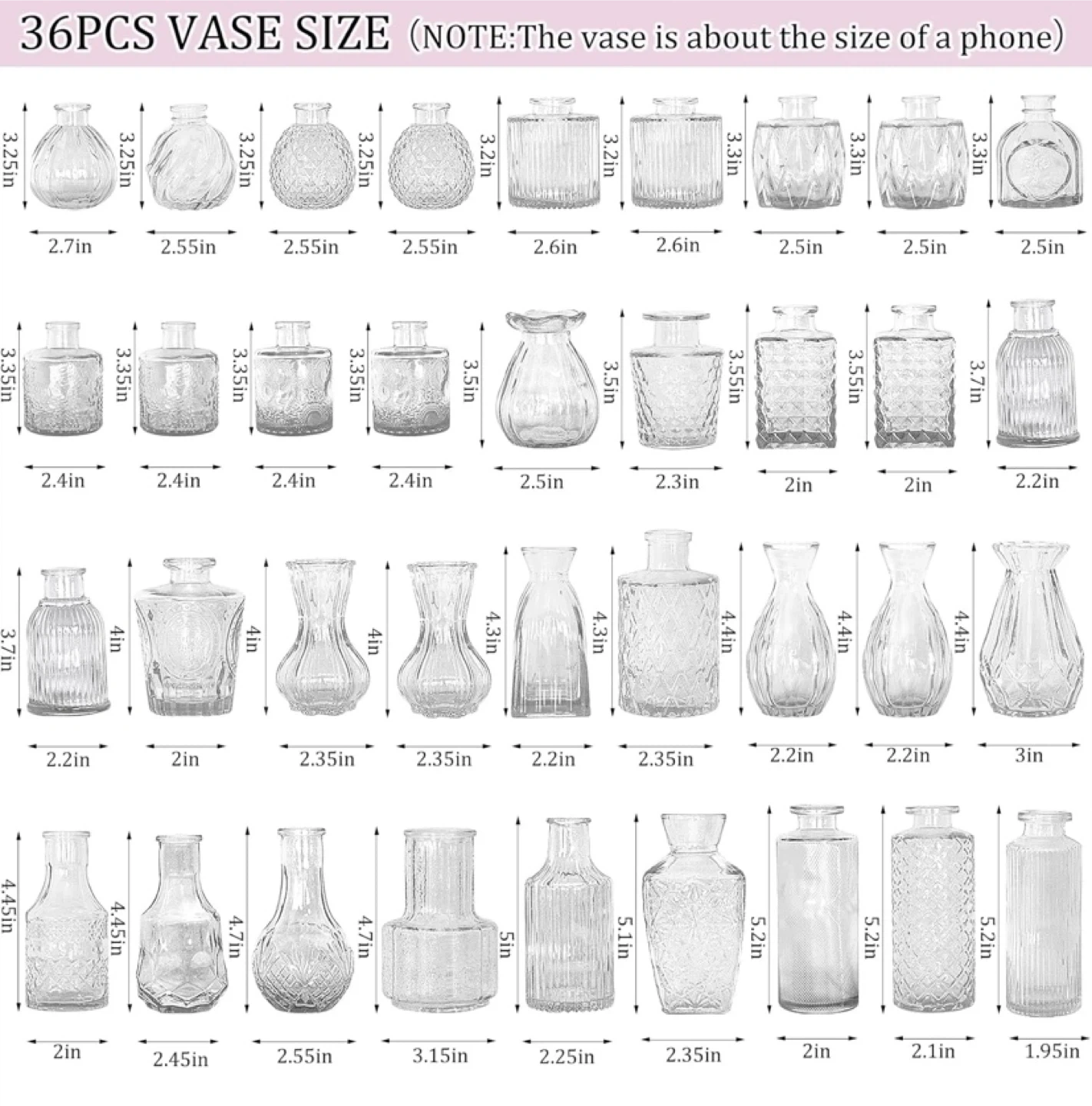36Pcs Mini Clear Glass Bud Vases Small Vintage Glass Bottles