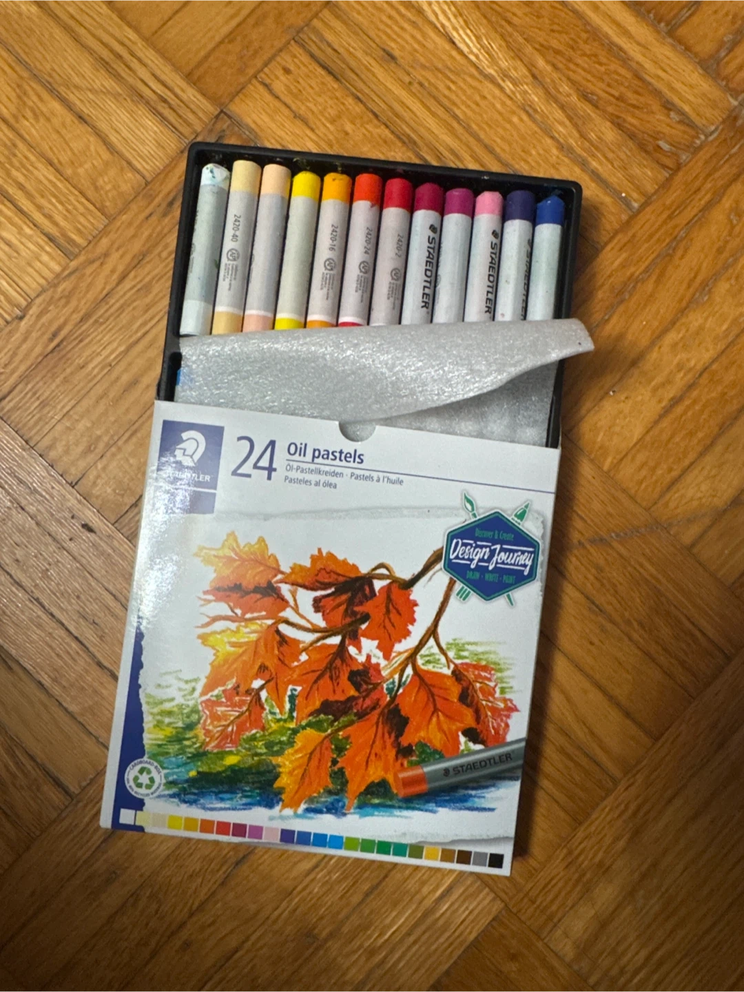 This is a set of 24 oil pastels from Staedtler. It's part of the Design Journey series. The pastels come in a variety of colours.