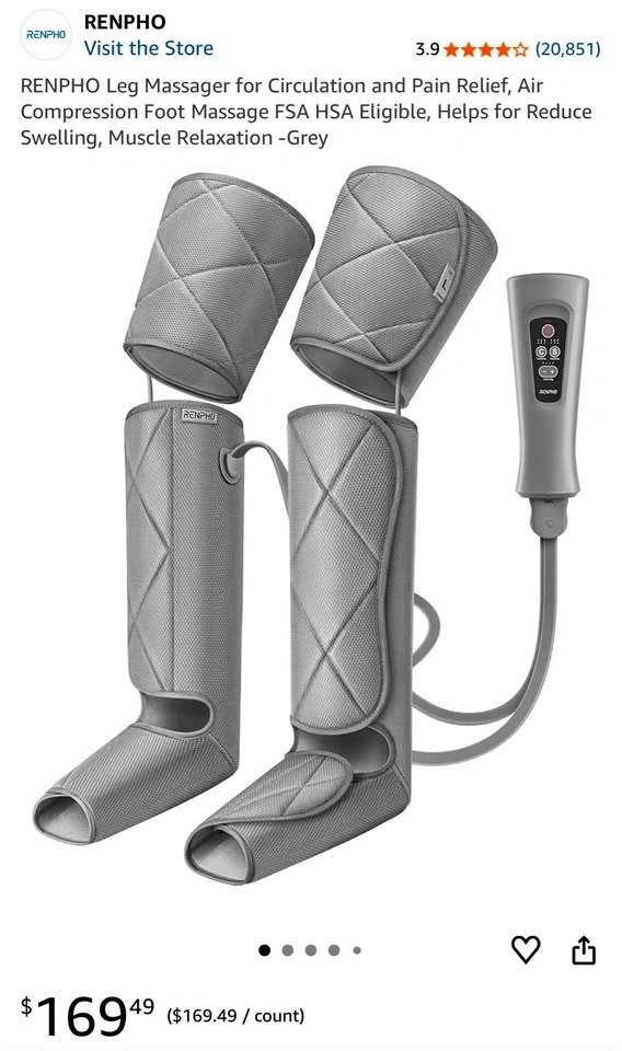 This is a new-in-box Renpho Aeria Ultimate leg air compression massager. It simulates massage techniques by inflating and deflating to promote circulation, relax muscles, and aid recovery after exercise. It features 4 intensity levels and two modes (Combine and Separate) with 6 different massage patterns. It's great for relieving leg fatigue from standing, sitting, or workouts, and is ideal for nurses, teachers, athletes, and the elderly. Pick up in Courtice. Please check my other listings!