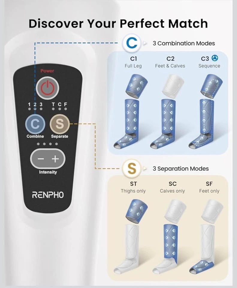 This is a new-in-box Renpho Aeria Ultimate leg air compression massager. It simulates massage techniques by inflating and deflating to promote circulation, relax muscles, and aid recovery after exercise. It features 4 intensity levels and two modes (Combine and Separate) with 6 different massage patterns. It's great for relieving leg fatigue from standing, sitting, or workouts, and is ideal for nurses, teachers, athletes, and the elderly. Pick up in Courtice. Please check my other listings!