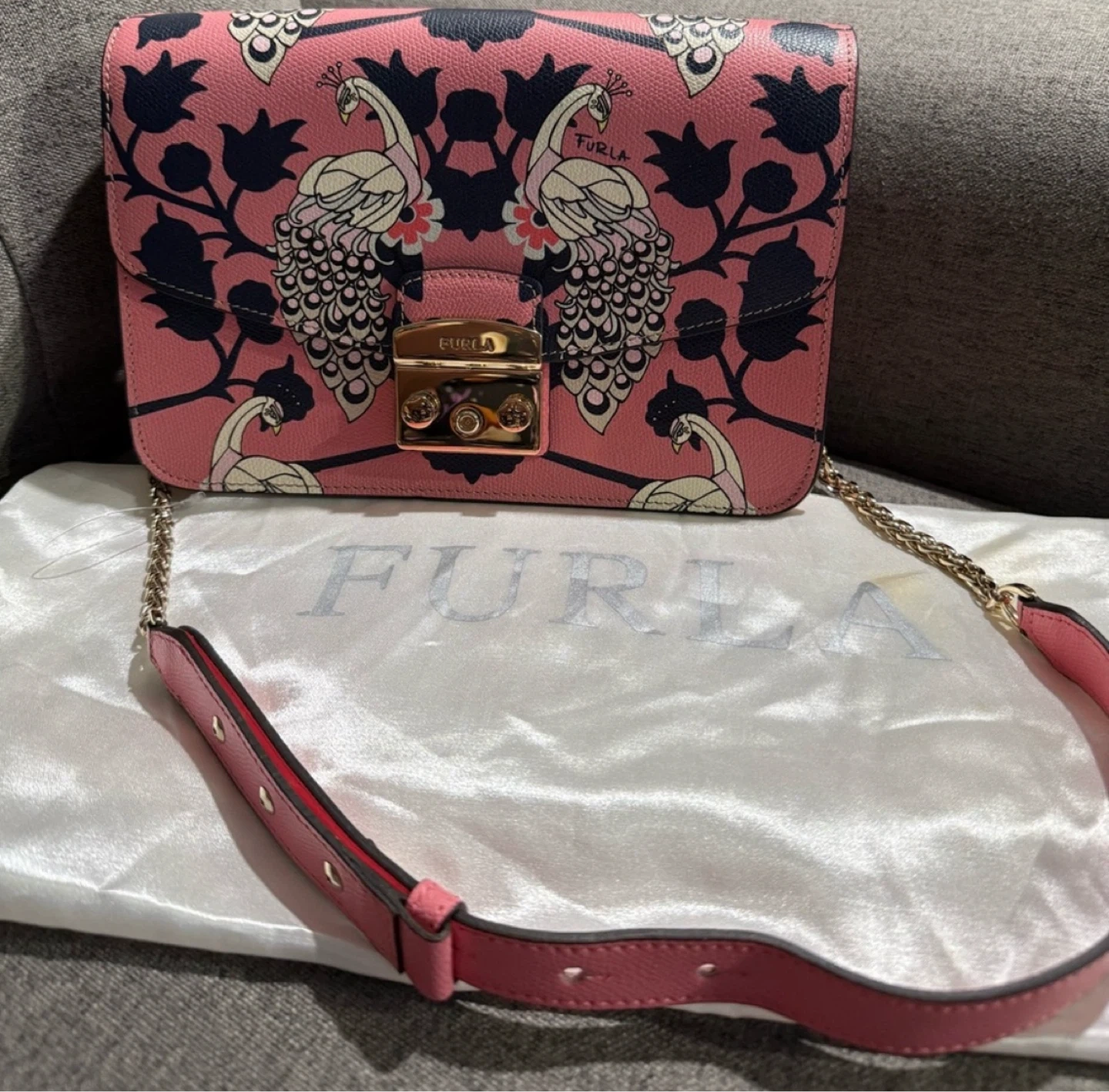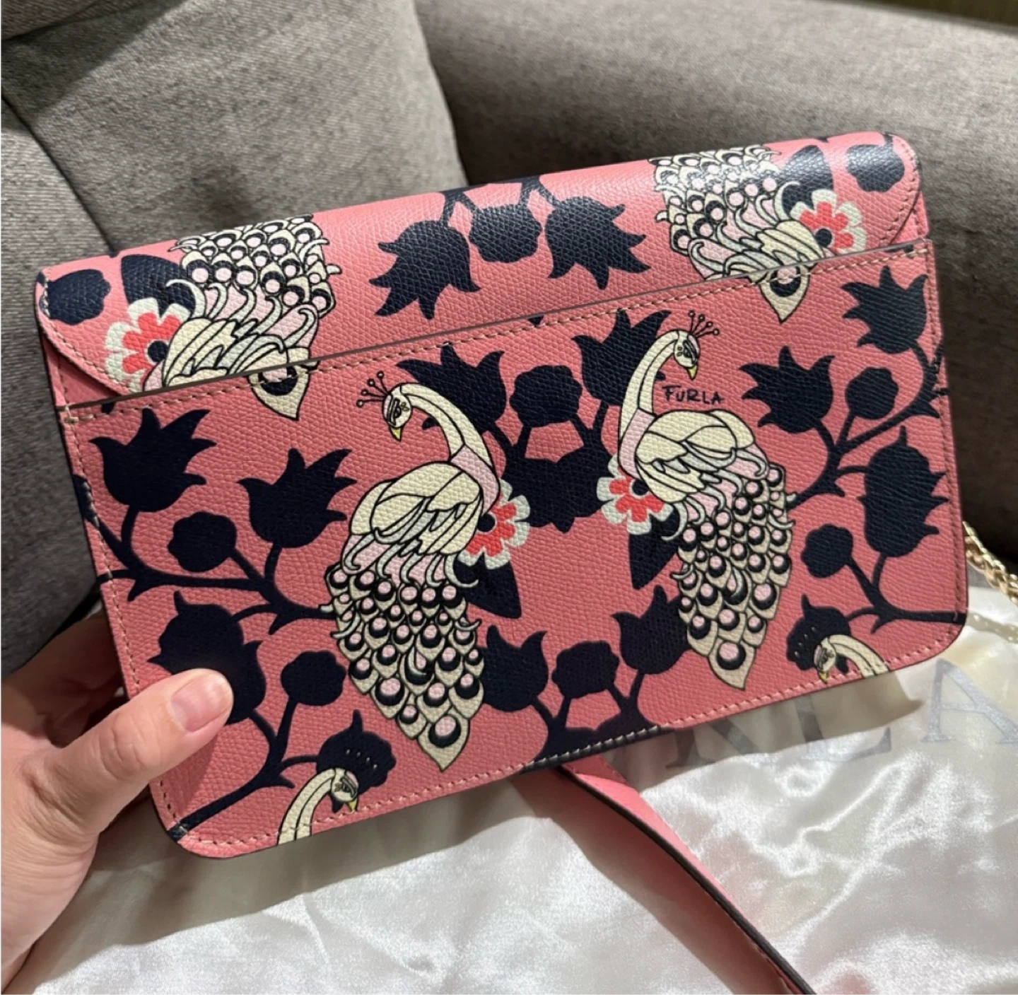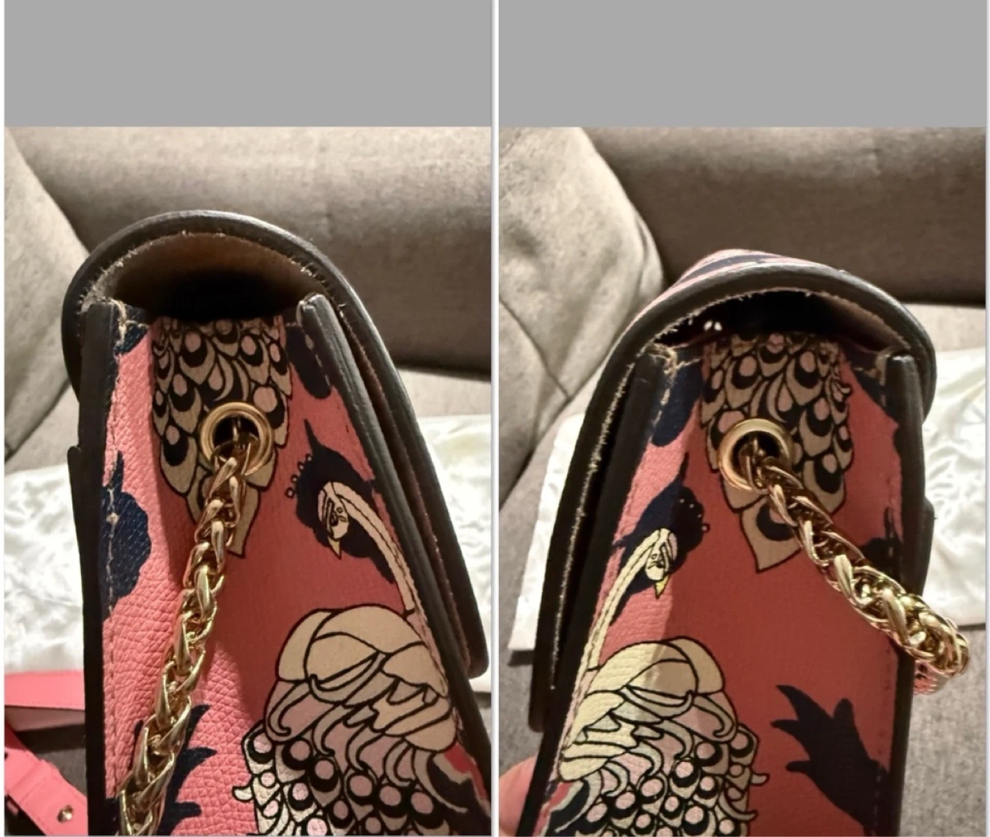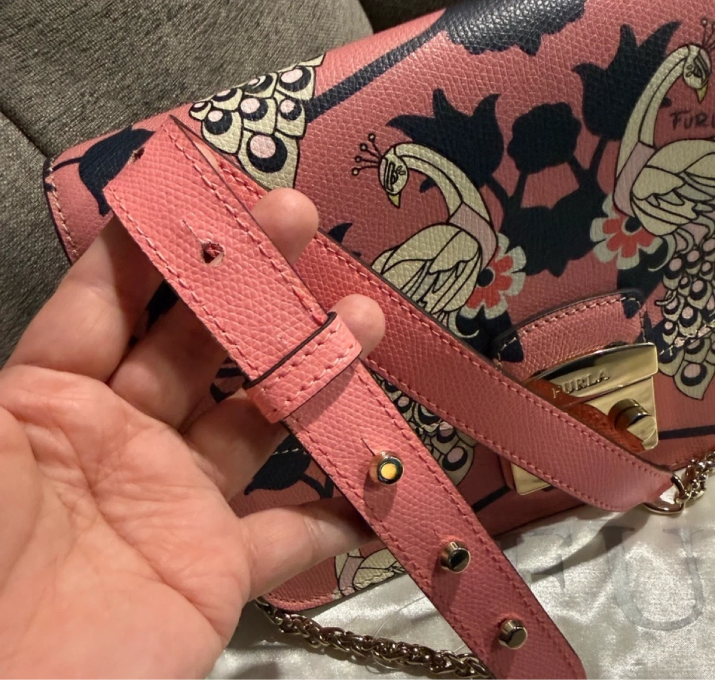 💯 Authentic. Preloved in great condition with no major flaws to mention. Very chic with elegant peacock design. Features pink and dak blue tones. Stylish and versatile. Still gold hardware with minimal hairlines, no visible flaws. It’s. shoulder bag with adjustable strap but too short to be worn as cross-body, still very cutesy.