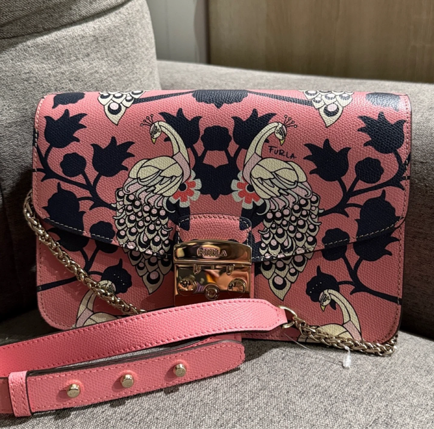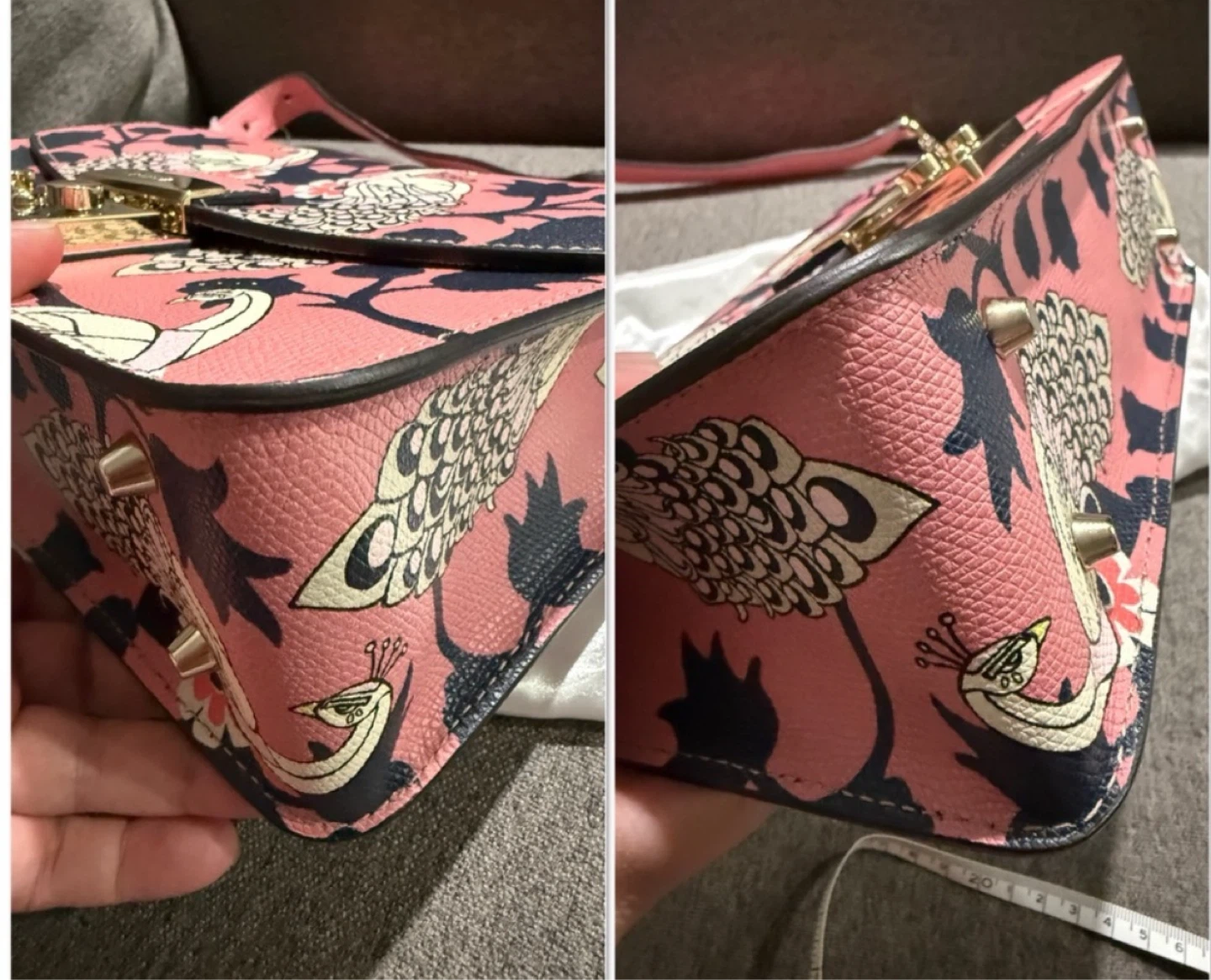 💯 Authentic. Preloved in great condition with no major flaws to mention. Very chic with elegant peacock design. Features pink and dak blue tones. Stylish and versatile. Still gold hardware with minimal hairlines, no visible flaws. It’s. shoulder bag with adjustable strap but too short to be worn as cross-body, still very cutesy.