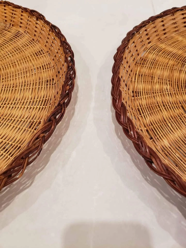 Pair of Large Round Wicker Trays