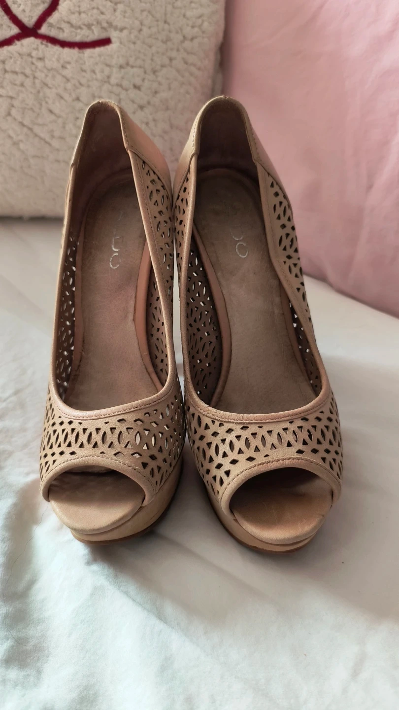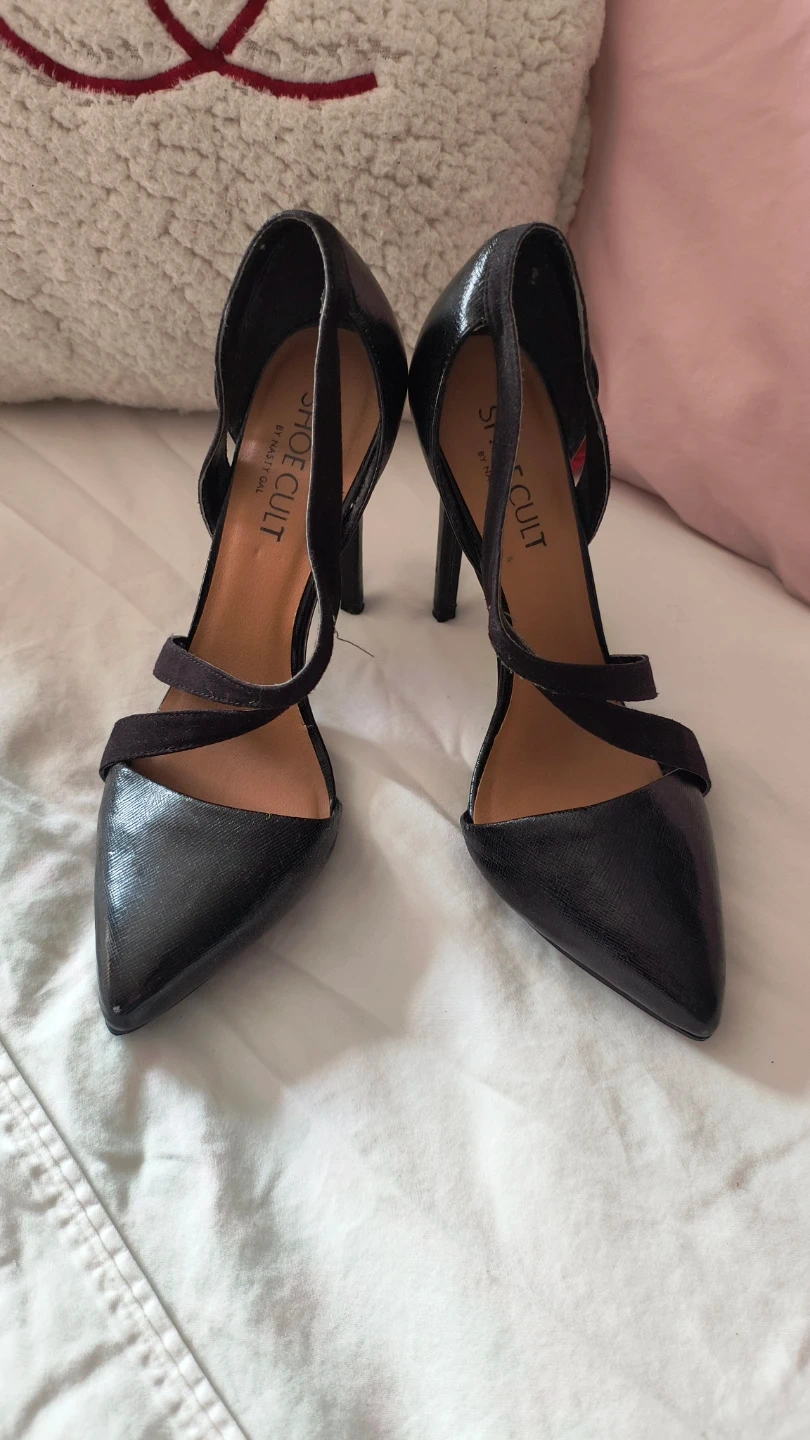 SHOE CULT by Jeffrey Campbell wedge coach boots in black. Made with suede and faux fur lining. Aldo open toe leather Features a wooden wedge heel and decorative stitching. Perfect for adding some flair to your outfit!
