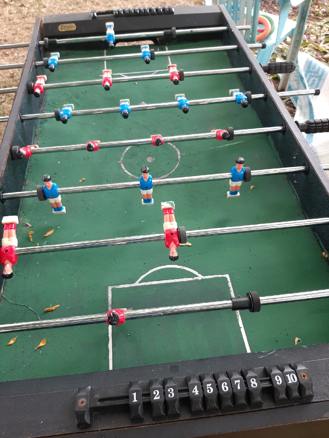 151Selling a foosball table! It's in used condition but still lots of fun to be had. Great for game nights or just to have around for some entertainment. It has been lovingly repainted and has an orange, peach coloured ball. 26 INCHES WIDE, 42 INCHES WIDE, 36 INCHES TALL.