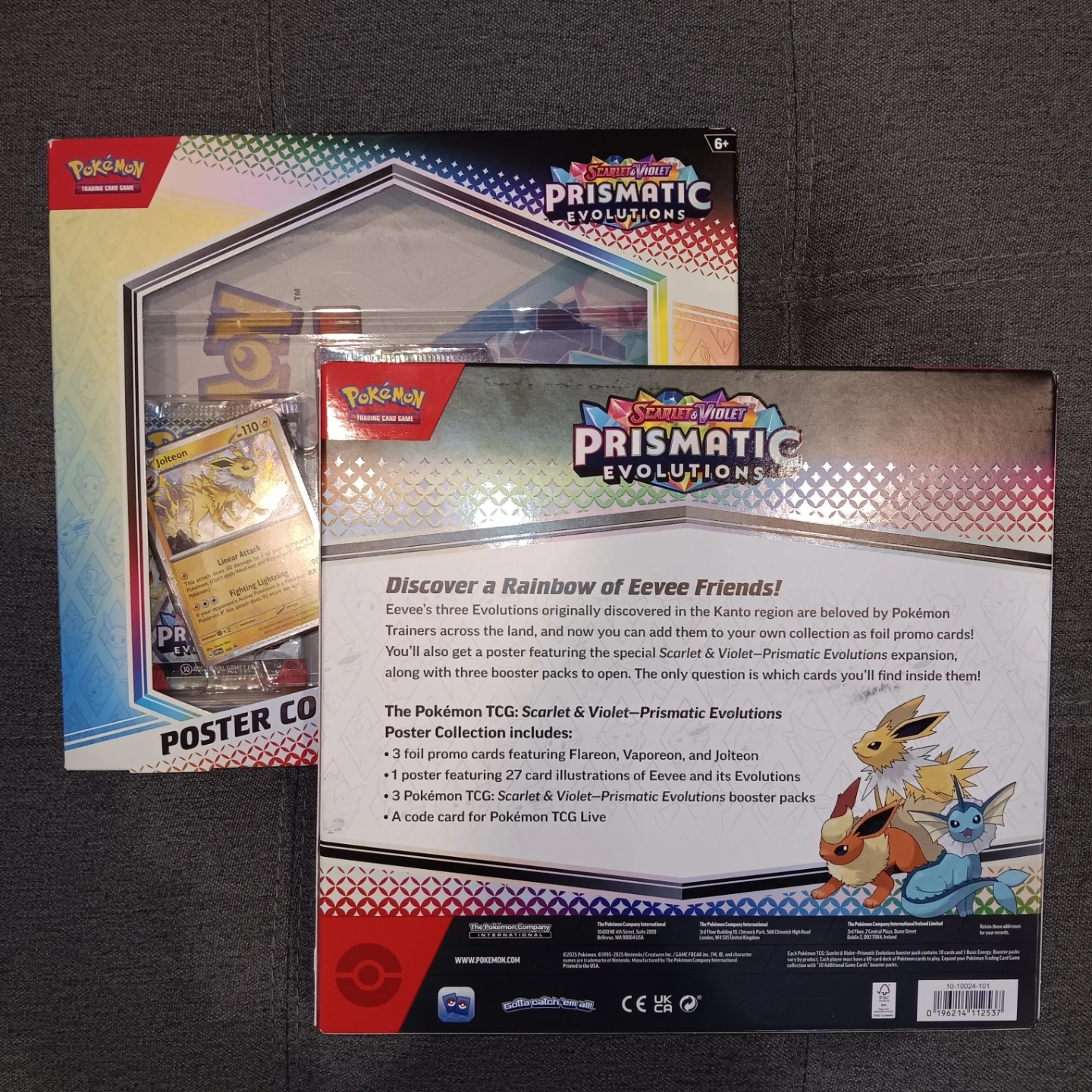 2 boxes of the Pokemon Scarlet & Violet Prismatic Evolutions Poster Collection